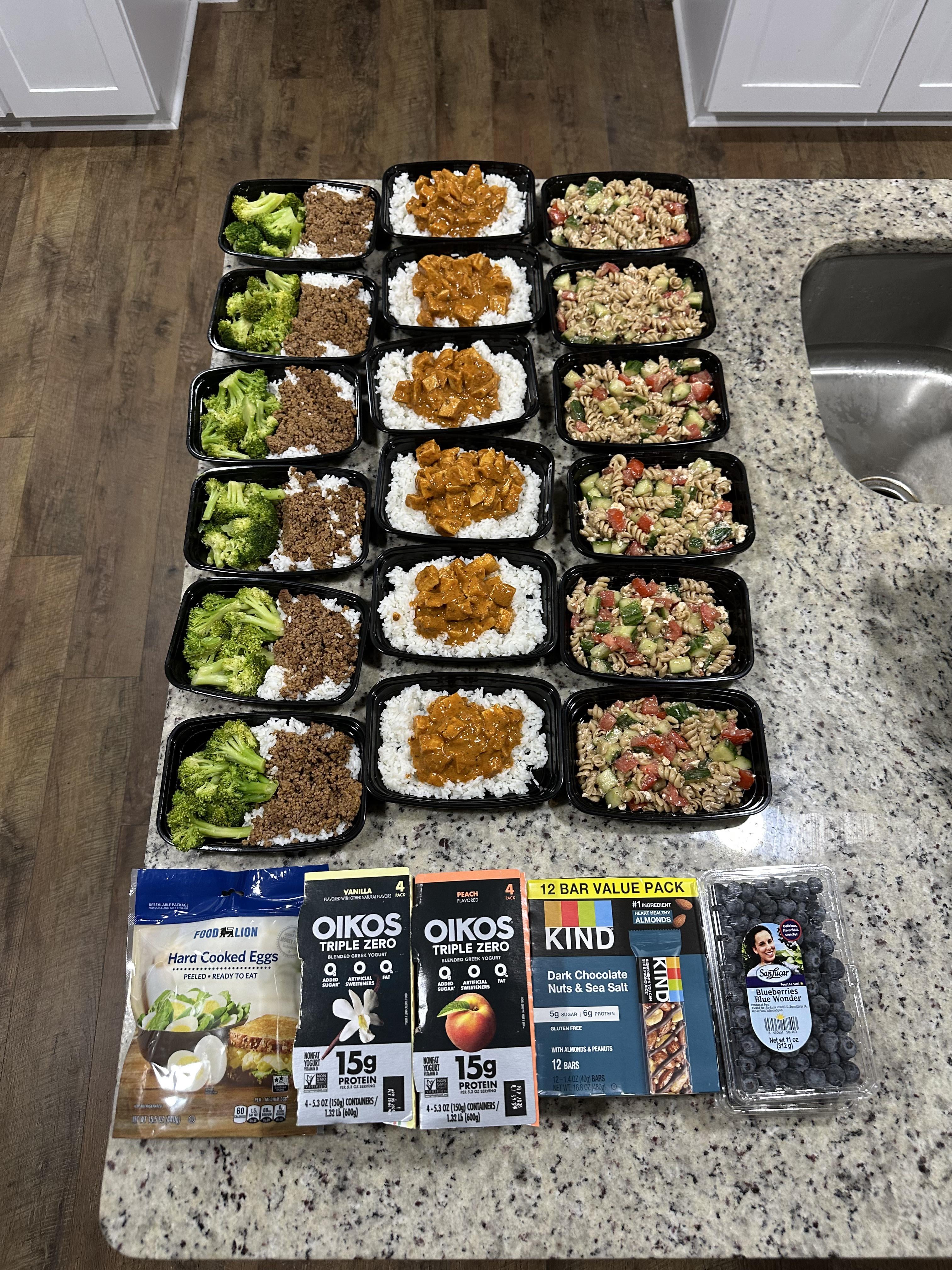 Ground beef with rice and broccoli Chicken Tiki Masala Pasta saladPlus a few quick items for breakfast / dessert by bearonunicylce 1 Comment question8all 8 months ago Now that’s inspiration! Do they stay fresh through the week or do you freeze?Write A CommentYou must be logged in to post a comment.
