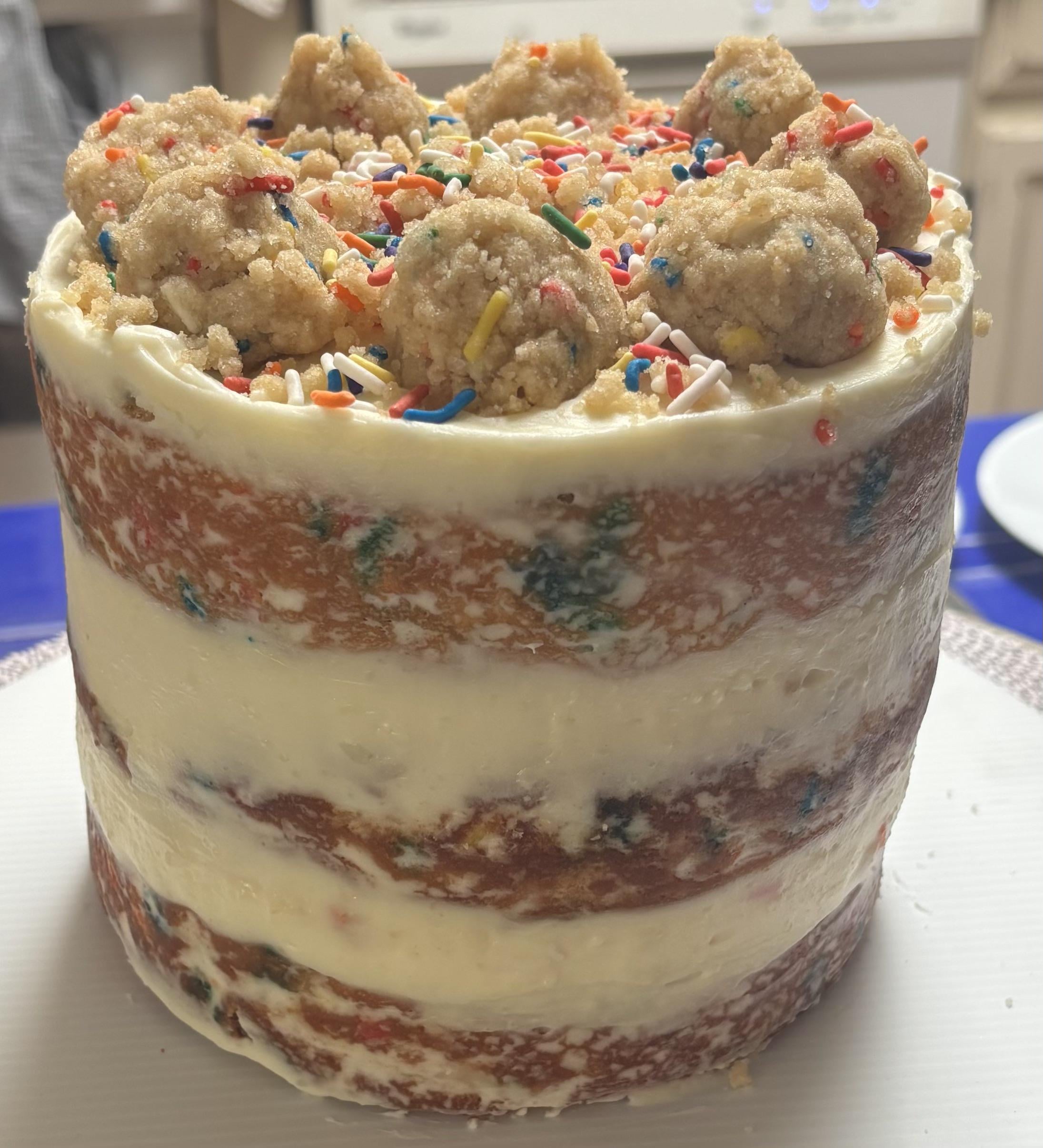 Ringing in my 28th birthday with this 6” funfetti cake. Design inspiration and recipe for the cake “truffles” are from Christina Tosi’s Milk Bar website. Super fun to make this! 🎂