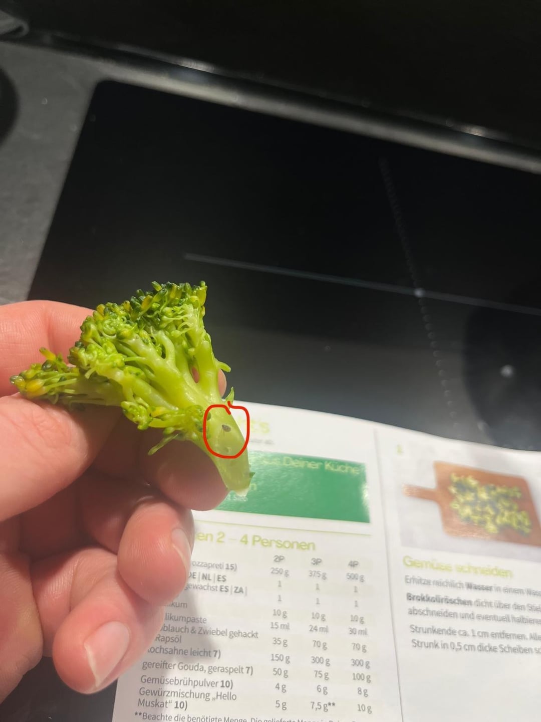I opened my box, ready to cook dinner, and what do I find? My broccoli was completely infested with maggots/insects. Not just one or two—it was crawling with them. Absolutely disgusting. Obviously, I had to throw out the entire meal.
