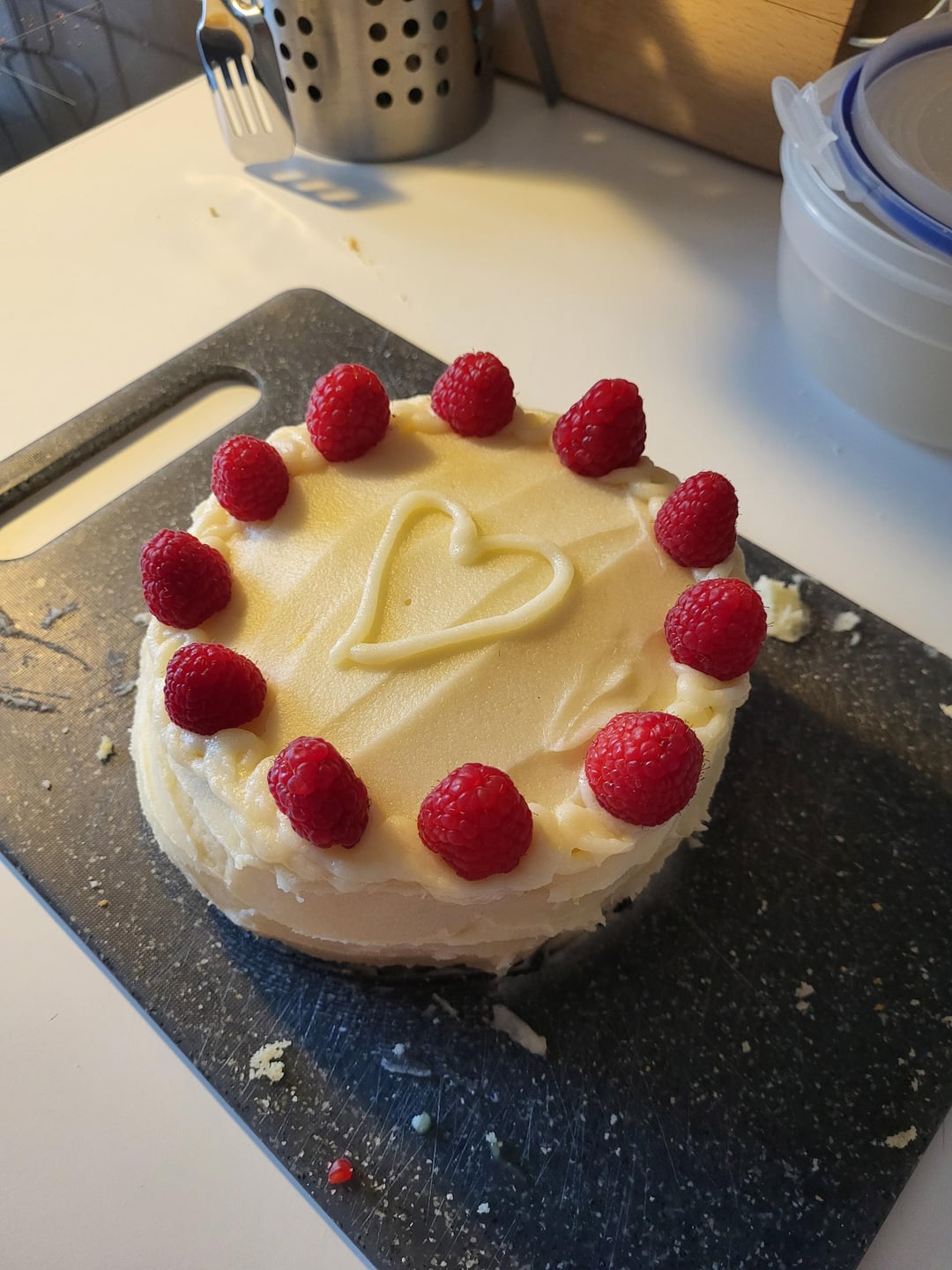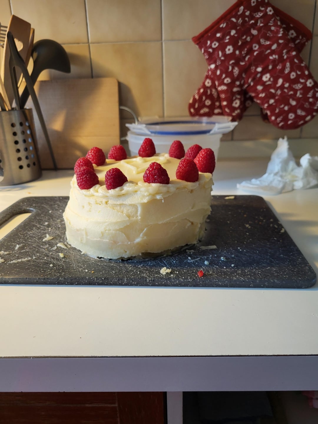 I baked lemon curd cake with lemon frosting for my dad's birthday! It was my first cake I've ever made so I wanted to share!