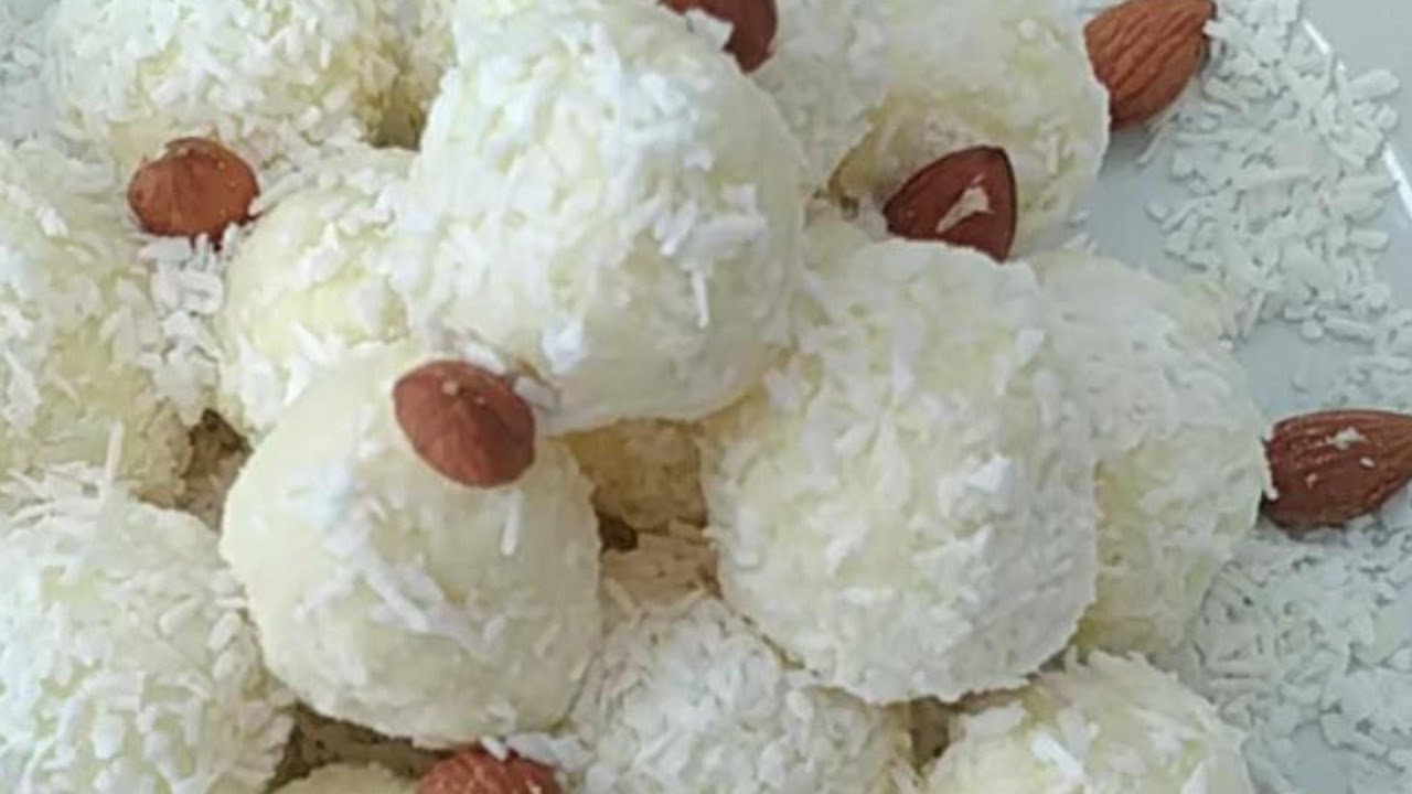 * Roll the Raffaello balls and garnish with desiccated coconut.