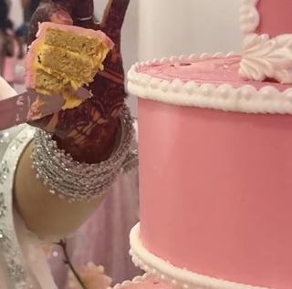 The flavour is mango and it’s meant to be vintage inspired (like bridgerton/old fashioned wedding cakes) but with a modern and pink twist! I love the different versions of pink under the light of different rooms 🥹🌸