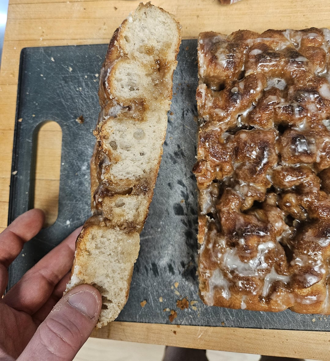 This follows the trend I’m noticing of, “slapping any dough in a rectangular pan, dimpling it, covering it with stuff, and calling it focaccia”. The dough matters.