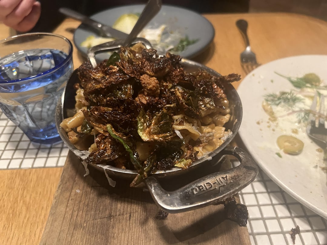 Third course: Baked Rigatoni Pasta. Standout of the meal for me. Loved the additional roasted Brussel sprout leaves on top to add some crunch. Mushrooms were almost like little sausage bites mixing perfectly with the pasta. Big fan.