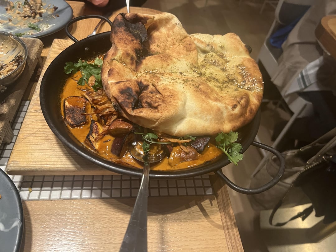 Fourth course: Roasted Duck Tagine. Delicious and an ENORMOUS portion. Duck was tender, easy to pull apart with just a fork. I’m not normally an eggplant guy, but this eggplant was perfectly cooked and swimming in what almost tasted like a roasted red pepper sauce. Also loved the bread and spent a good portion of this course ripping off bits of it to devour more of the sauce.