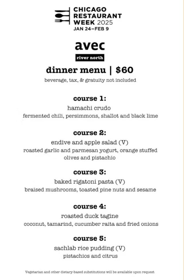 Checked out Avec River North on the first night of Restaurant Week. $60/person for a 5 course meal.