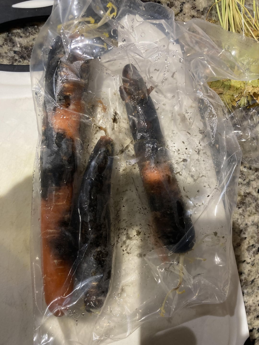 voteblue18 8 months ago Was your package stuck somewhere for a long time? I’ve never seen carrots turn black like that. Floppy and limp, yea, but black? Yikes.