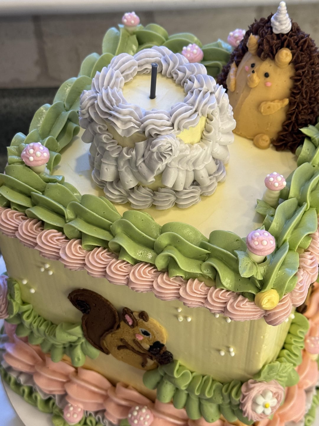 The request was funky vintage with animals. I actually feel very proud of how it turned out! π by ThroatSuch5493 10 Comments roastonbone 8 months ago I think you nailed it. So cute! Triguntri 8 months ago Is that a hedgehog?! That is insanely adorable; I love the little party hat on top. How did you make that lil’ guy? a_common_spring 8 months ago Genuinely adorable. I love mini cake on a cake. IdgyThreadgoodee 8 months ago This is SO cute!! Youβre very talented! parrothead_420 8 months ago So fun and funky. Really like your color palette!! 26heavysounds 8 months ago this is so precious!! NanaimoStyleBars 8 months ago I love the hedgehog and squirrel! So cute! What animals are on the other sides? glitter_n_lace 8 months ago A hedgehog with a birthday hat?! Come on! Just the CUTEST!!! Littlemssonnie 8 months ago So cute! Is the there real cake in the tiny one or is it fondant? Alone-Introduction74 8 months ago This is darling β€οΈ π πWrite A CommentYou must be logged in to post a comment.