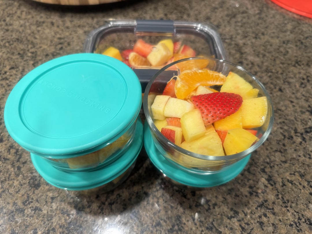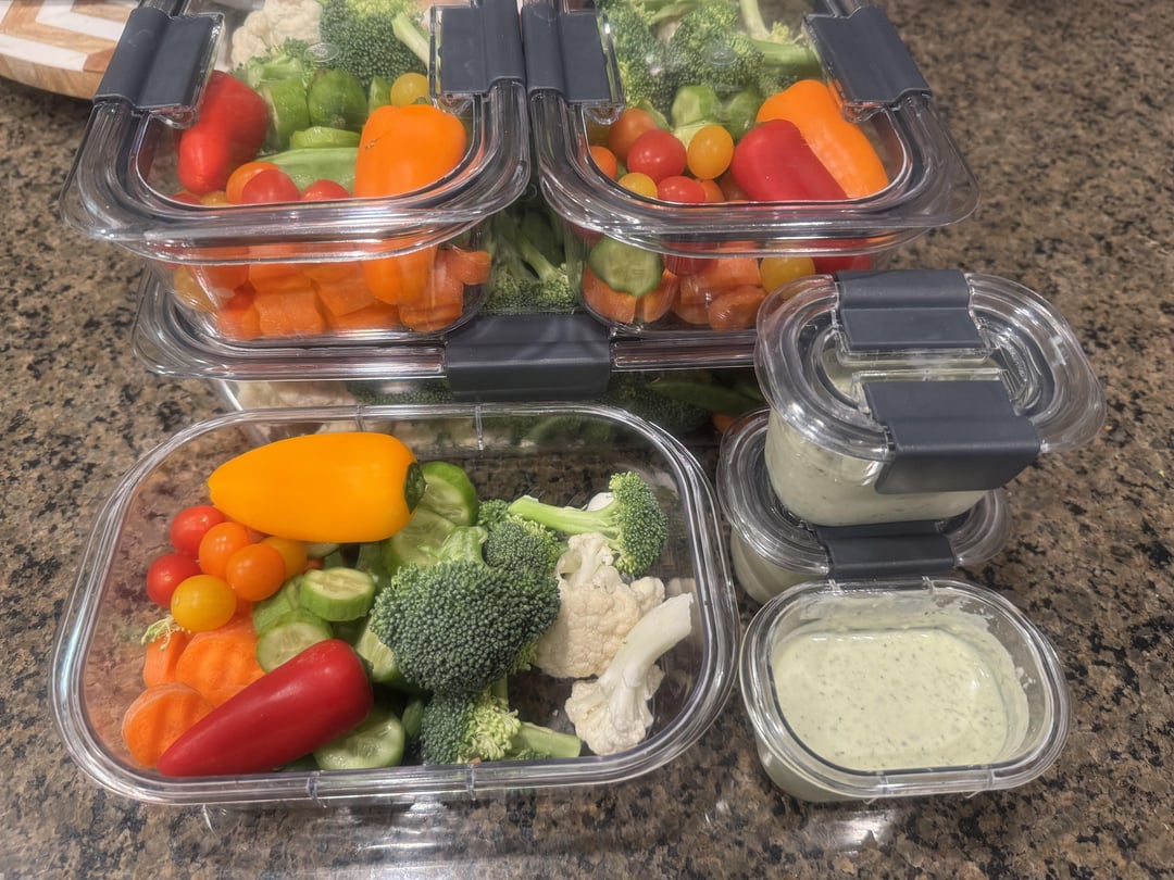 I’m trying to get over pneumonia and my husband is recovering from major surgery, so needless to say neither of us was feeling up for our regular meal prep session. So I leaned in to easy this week, just some chopping and I was done in less than 30 minutes. Thankfully we have some freezer meals to pull from for dinner throughout the week, so that won’t be a worry either.