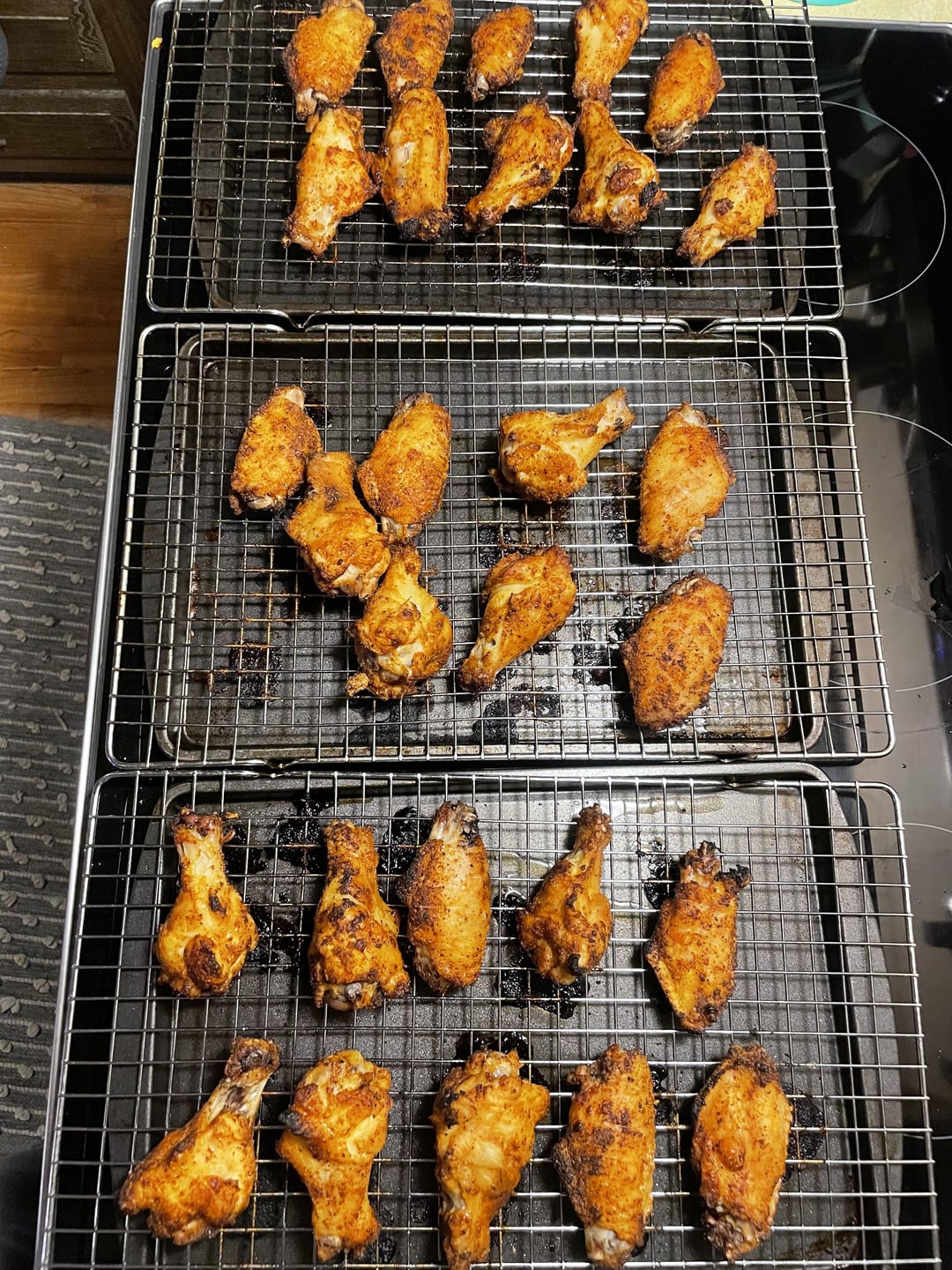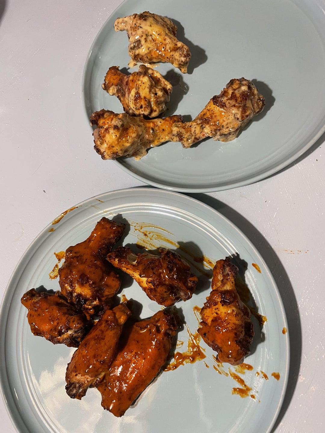Nashville Hot and Garlic Parmesan.First time trying them in the oven. After a bit of paralysis by over analysis of reading Reddit posts I wound up with baking powder and Nashville hot seasoning at 425°, 25 min, flip, 15 more by Smilner69 3 Comments Paindar1 8 months ago They look great 👍 Cookies4Cream- 8 months ago Nice work ✅ Not-a-robot-i-think 8 months ago NiceWrite A CommentYou must be logged in to post a comment.