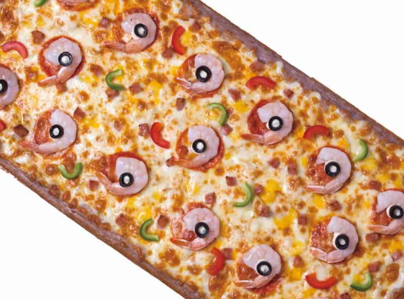 Sparsely topped Dominos ass looking pizza