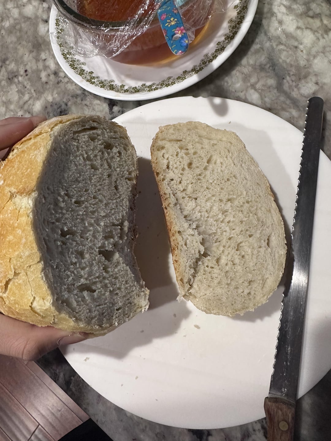 Hello, breadit community! I recently gained an interest in making bread since it’s one of my favorite foods and decided to give it a try! I must admit, I wasn’t too confident, since I’ve never cooked or baked anything before. The most I usually make for myself is scrambled eggs with some veggies in it. But it came out better than I could have imagined, and I’m happy with it, considering my lack of experience. I hope to continue to improve and be a part of this community!