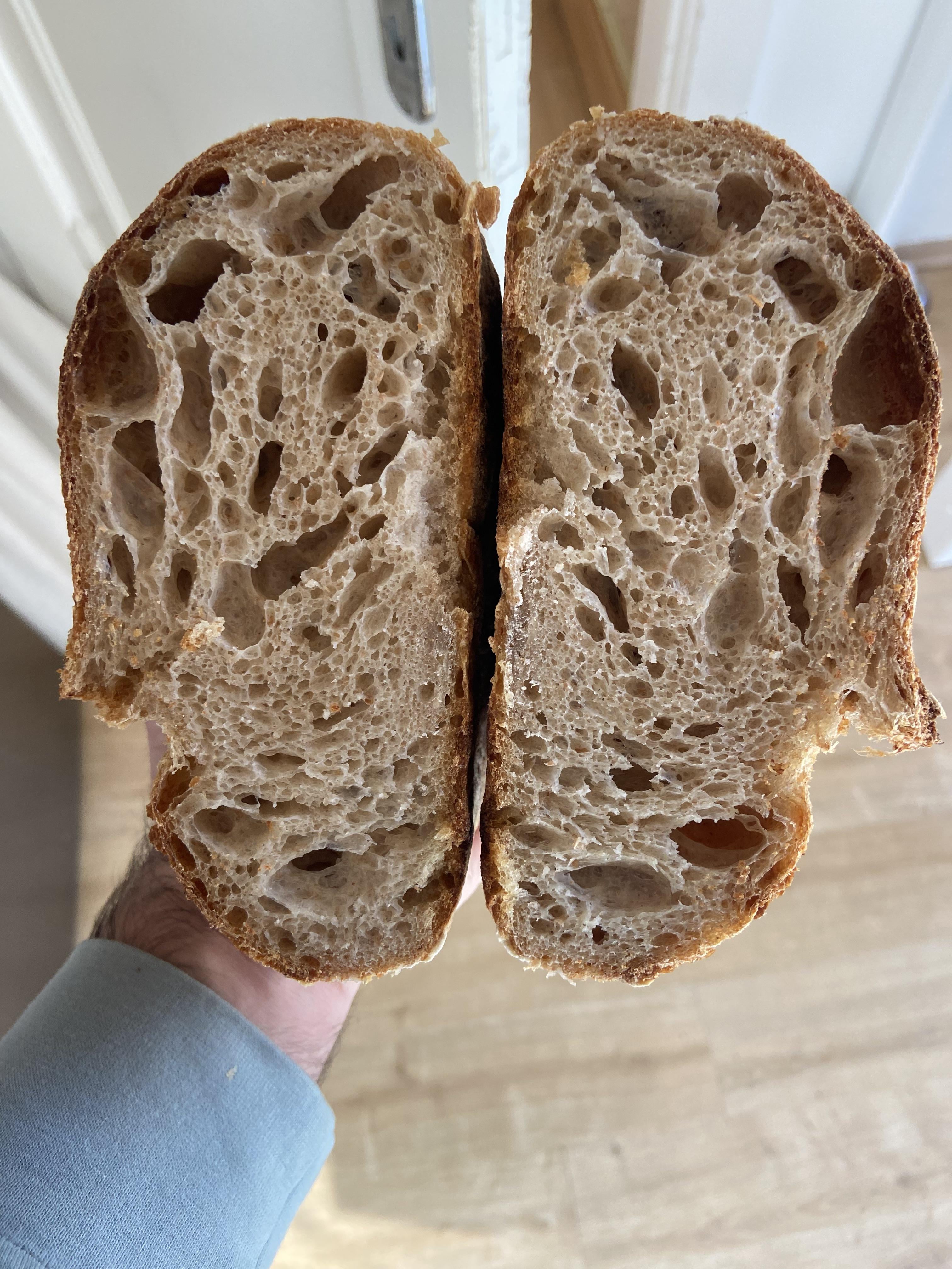 I’d say this is in the sweet spot based on the crumb. If you’re worried about your hole-y-ness, that’s mostly based on popping big bubbles during shaping.