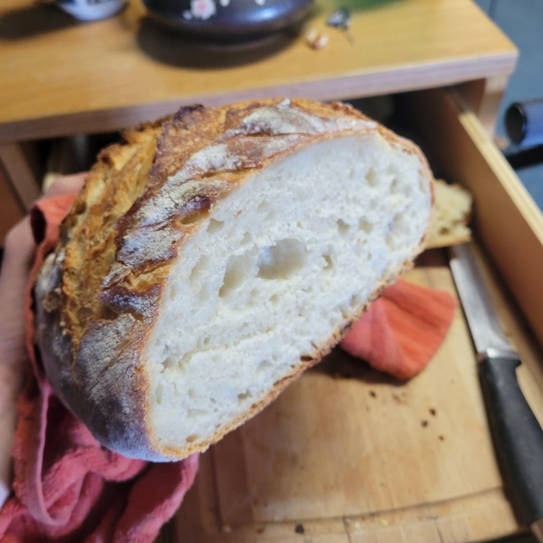 It is a yeast bread that I made overnight at my girlfriends house I am so proud of it.
