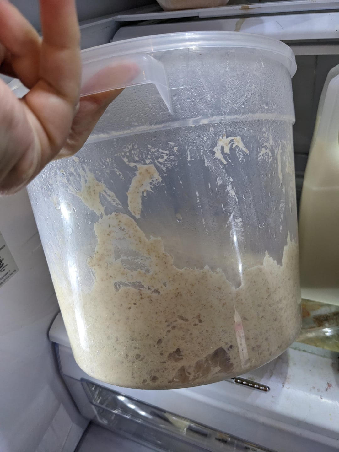 For those interested, the dough was about a quarter of my bucket bread recipe and had fermented in the fridge for about three days I think. Here's the base recipe I use. I change it up slightly every time and add different flours or sweeteners