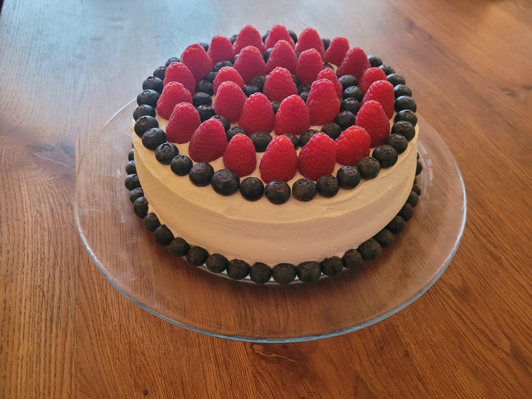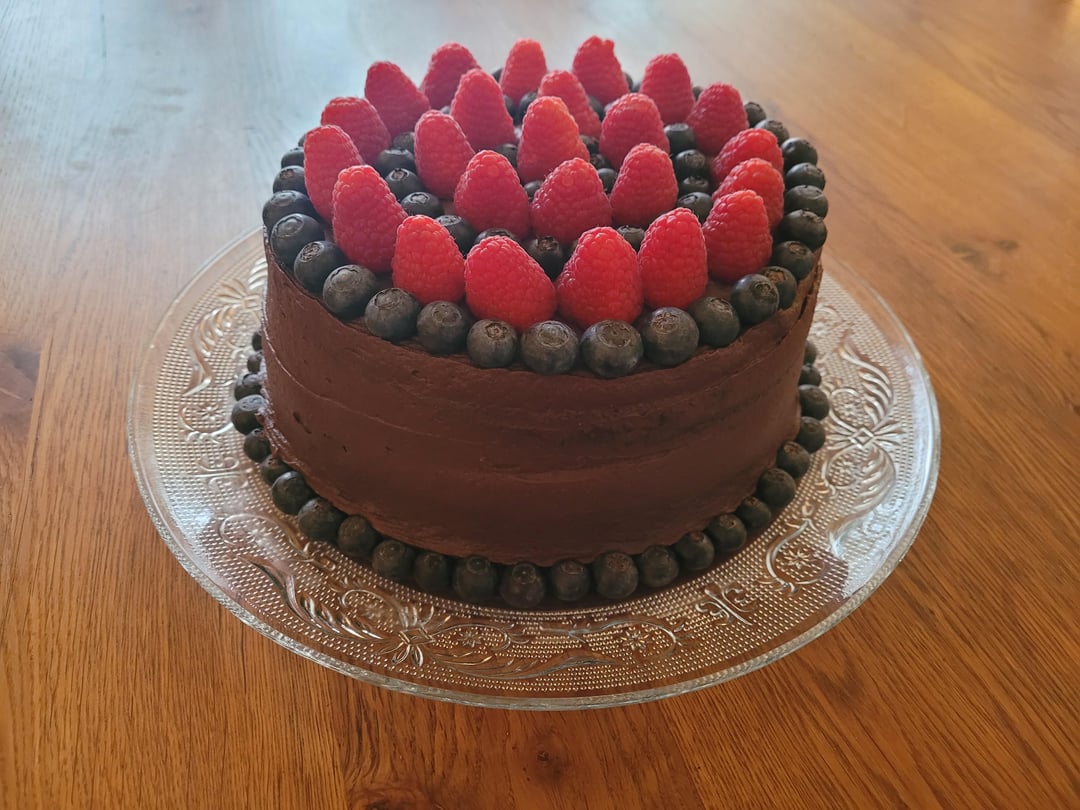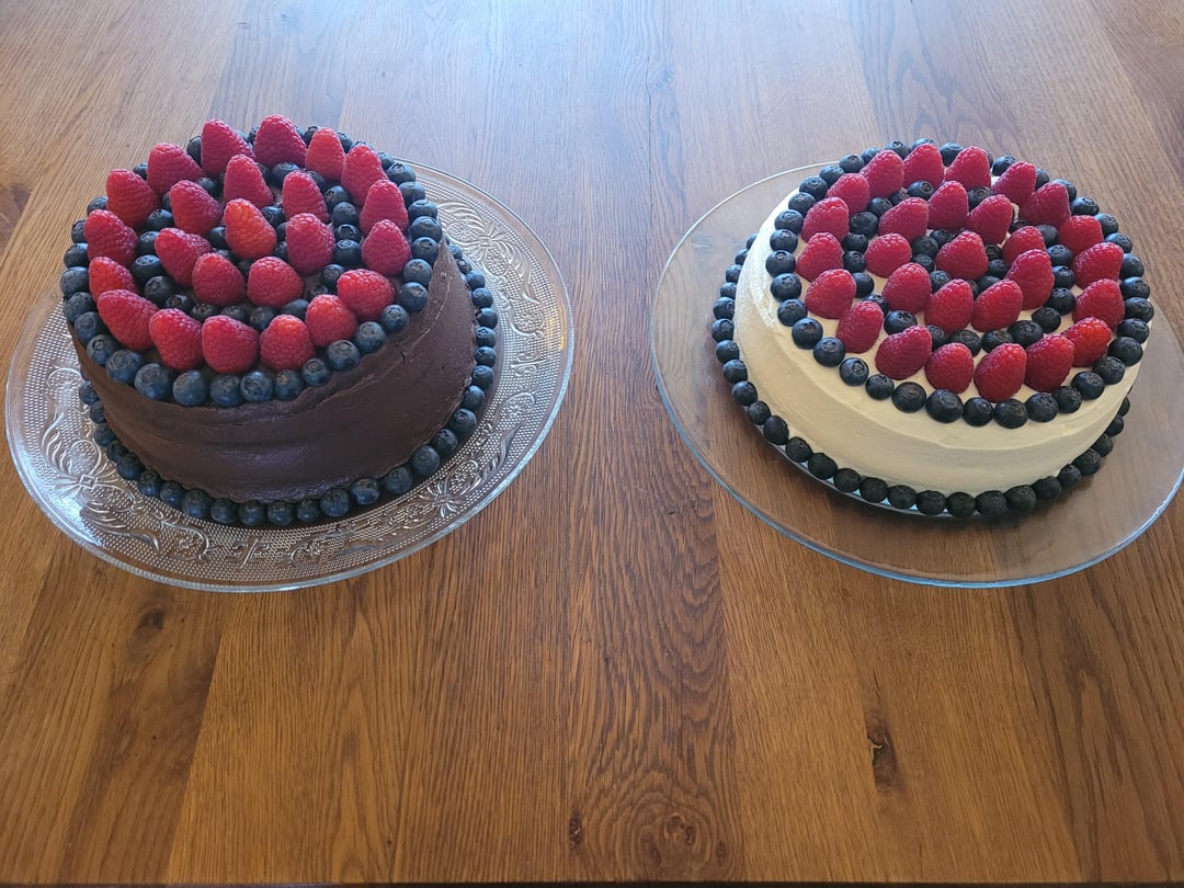 Pictured: chocolate fudge cake with an apricot filling and a cream cake with raspberry and mascarpone filling. Delicious!! 😄❤️