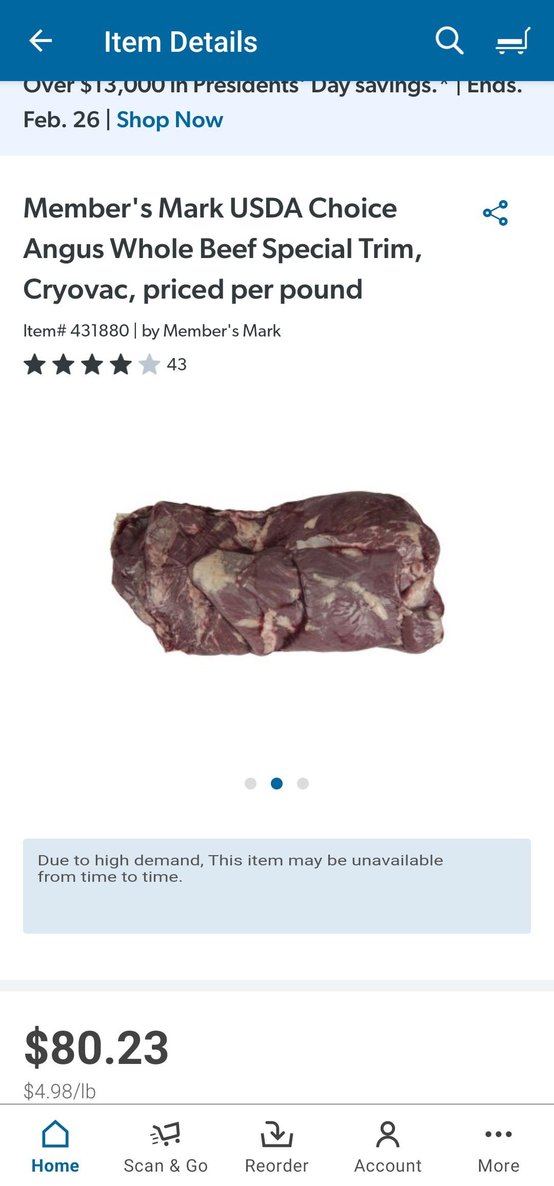 It’s Angus Whole Beef Special Trim, Cryovac, priced per pound.