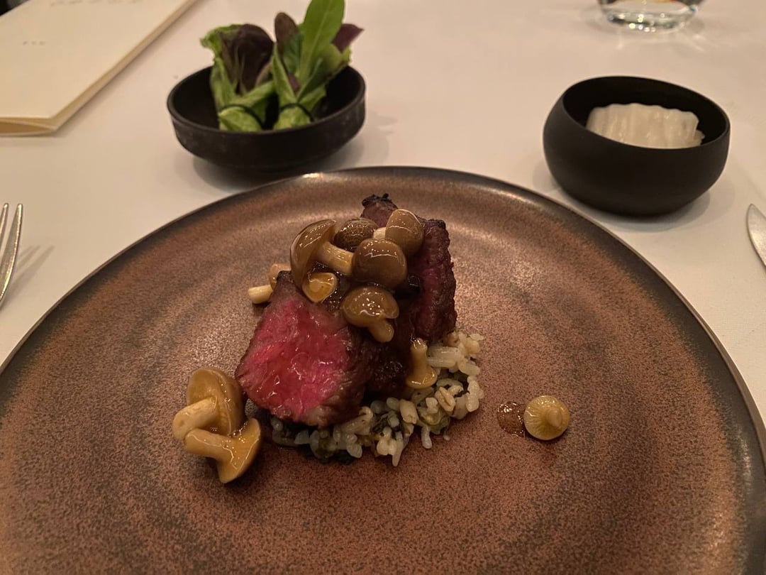 **Scallop**-the scallops are slightly chewy n sweet but there’s almost a plasticey initial taste to it, idk if it’s from the cast iron. The rice is slightly nutty n toasty though and goes well with the scallop and citrus emulsion which almost registers as a Hollandaise sauce. 8.5/10.