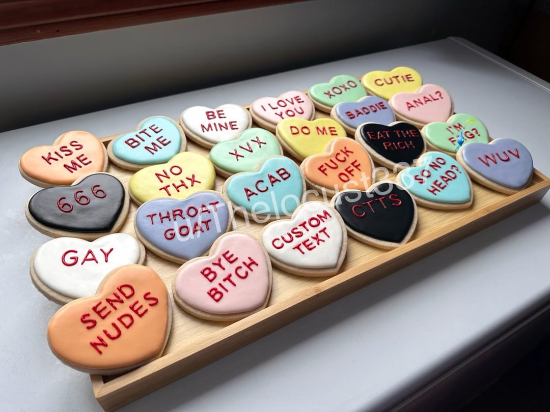 My recent Valentine’s Day cookiesby Thelocust337 7 Comments IslandChill_420-024 8 months ago Those look amazing! colbsk3y 8 months ago I love these! You nailed the text. LifeOfAnAIKitty 8 months ago Loveeeee all of these!! 🩷 ambeaver 8 months ago Hahahah, good job 👏 RaoulDukesGroupie 8 months ago NSFW? cute cookies tho randomizedscreaming 8 months ago Im gonna order 12 “gay” ones and send them to my best friend with no context Aggressive-Pickle110 8 months ago The nsfw conversation hearts are killing me!Write A CommentYou must be logged in to post a comment.