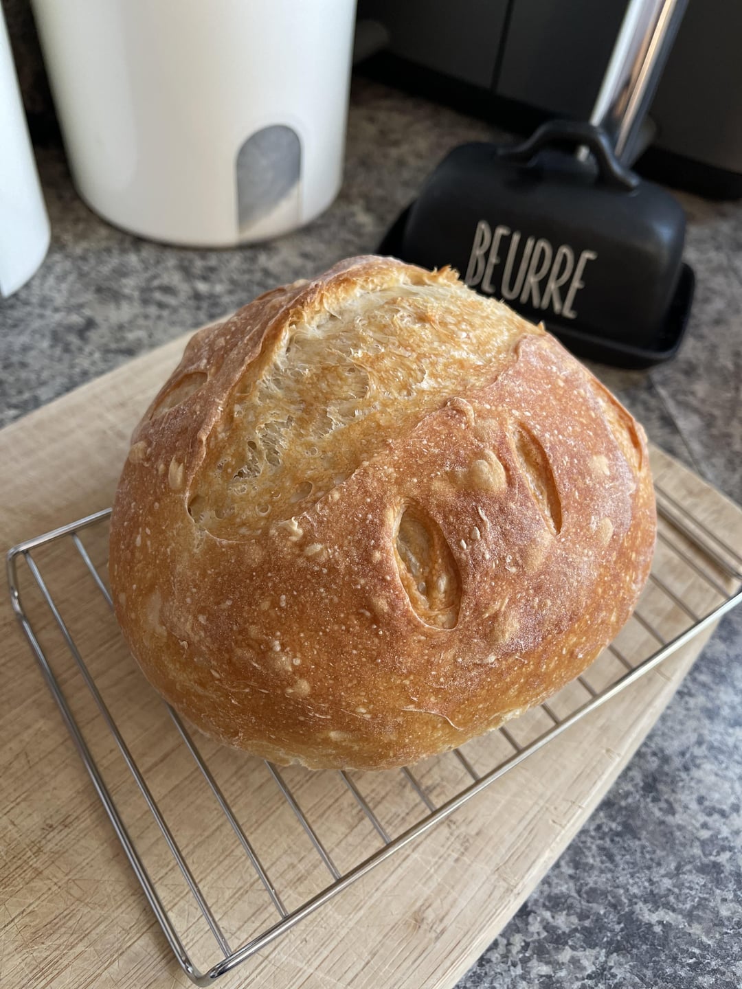 Looks good, but bake it until it’s a much darker brown and you will taste a huge difference. The sugars will caramelize and bring out amazing complex flavors. Bake at 465F (scientifically the best temperature for optimum oven spring).