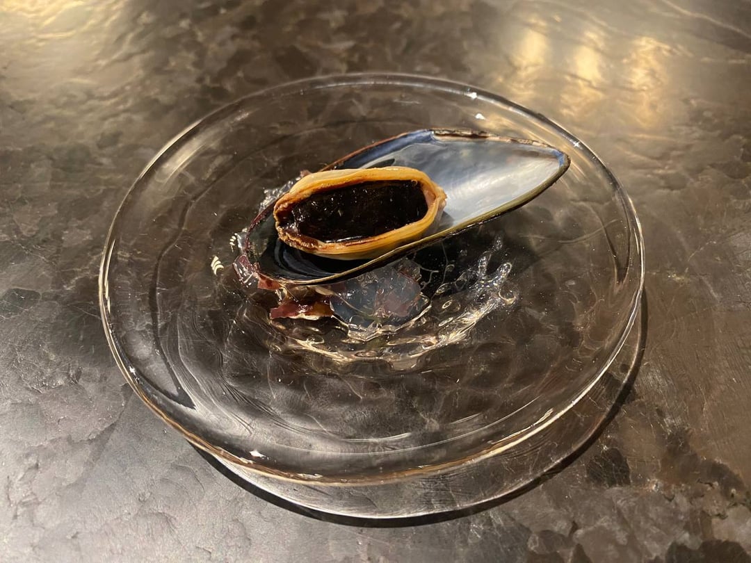 **Mussel**- savory, not briny at all. Mostly you taste the tuna’s umami and a tiny bit of sweetness and chew from the mussel. 7/10.