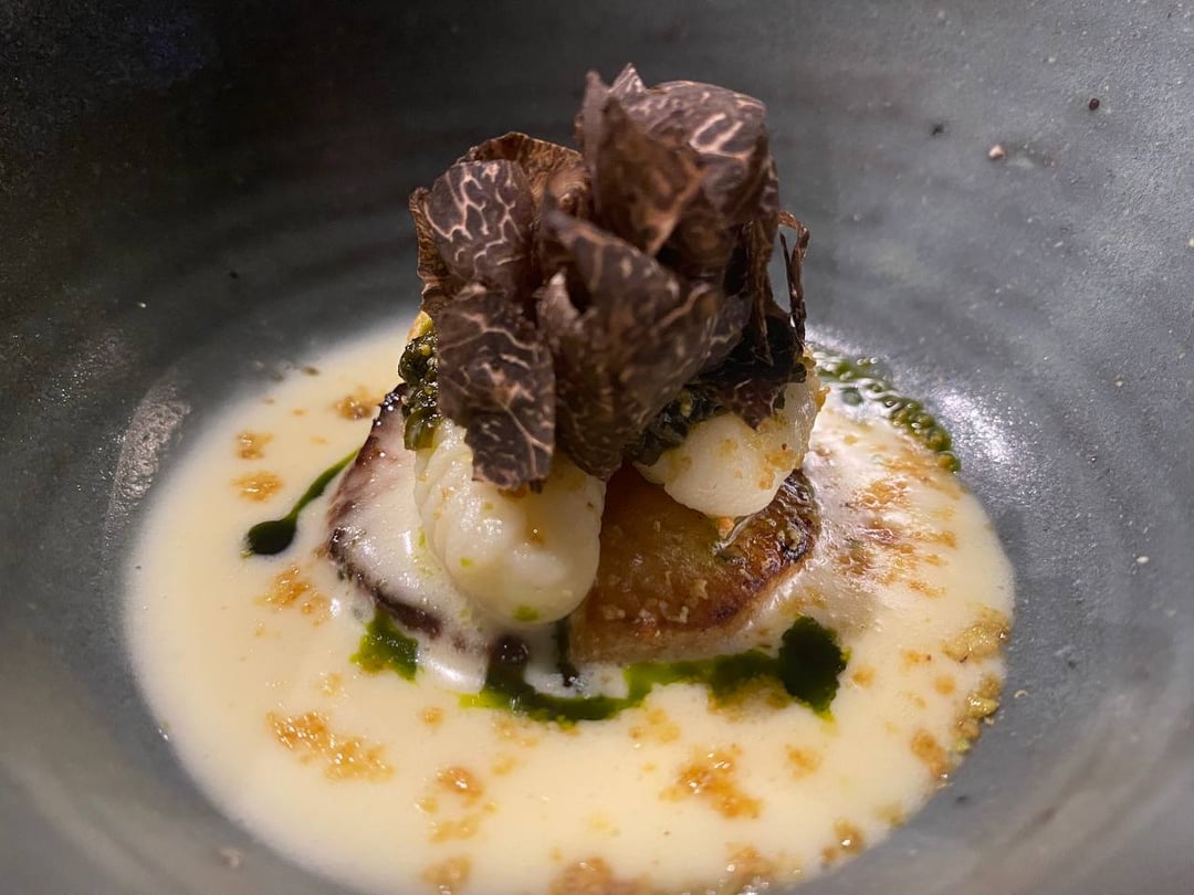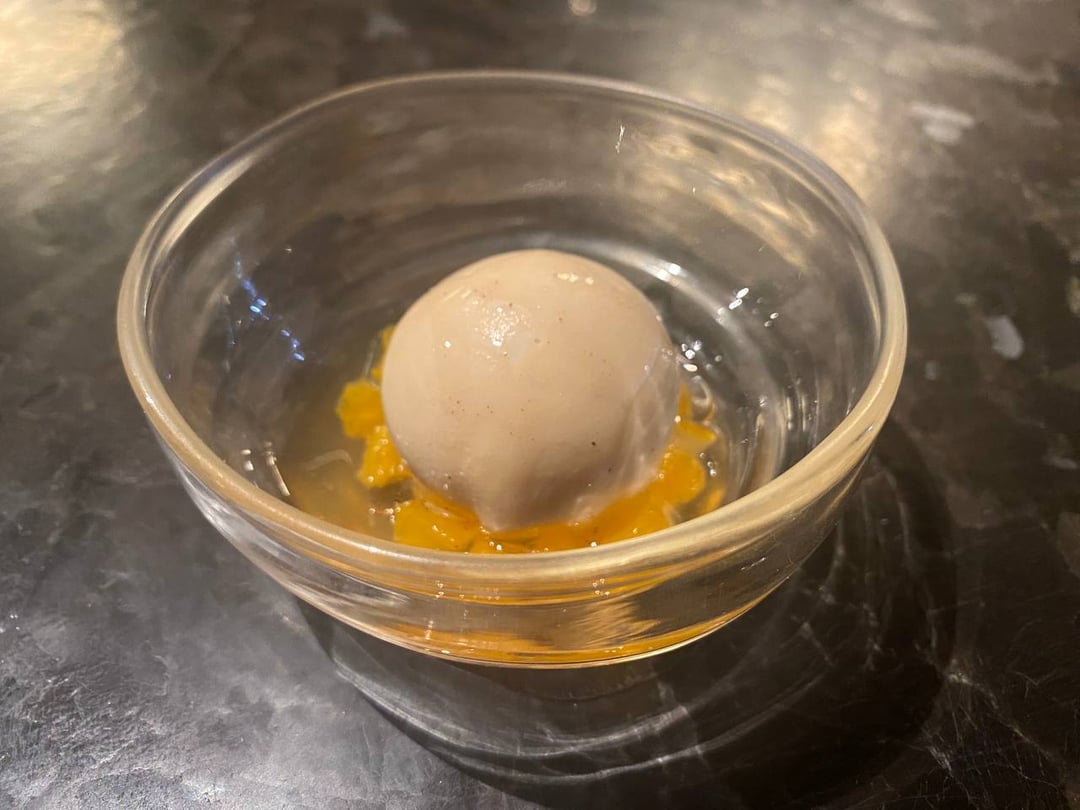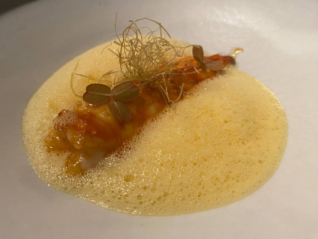 **Langoustine**-the foam is like a gentle seafood stock that’s then punched through truffle in a good nutty way. Holy fck this is the softest langoustine I’ve ever had though. I think it pairs super well with the gel and foam. The sweetness of the langoustine and the savory seafoody funk of the gel and foam. 9.5/10