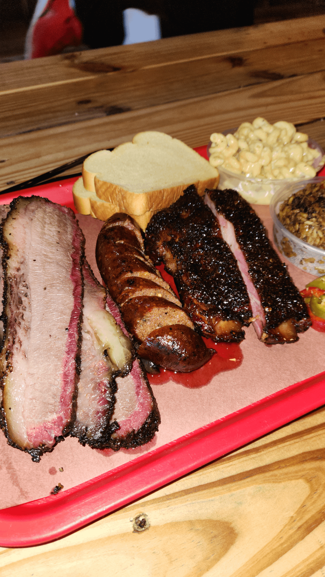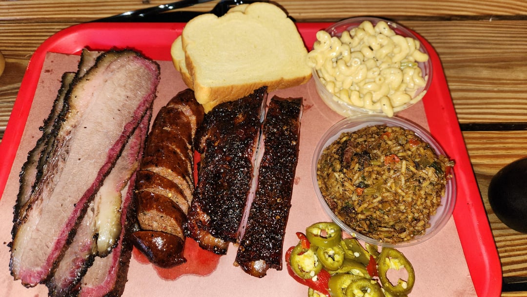 1 lb brisket, half lb pork rib, spicy sausage, dirty rice and mac n cheese Some of the best BBQ ive had besides goldees by onlyabdul 9 Comments telji 9 months ago Looks delicious. How much did you pay? Loader-Man-Benny 9 months ago Wow that looks good Ok_Cover5451 9 months ago Do u need someone to be critical lol…that brisket looks too pale in the pic, and u didn’t turn a rib on its side so we can see the goods ExplanationFew8890 9 months ago That dirty rice looks hella seasoned and all the rest looks good as well. Rivvin 9 months ago the color on the fat is primo work No-Examination9611 9 months ago Awesome 👌 looking!!! Truly delicious looking 😋 Public_Enemy_No2 9 months ago Normally, when I see an exaggerated smoke ring, I think pellet smokers. This joint use em? siriboss 9 months ago One of my favorites in DFW! Candid-Librarian7015 9 months ago That’s a feast. Looks incredible.Write A CommentYou must be logged in to post a comment.
