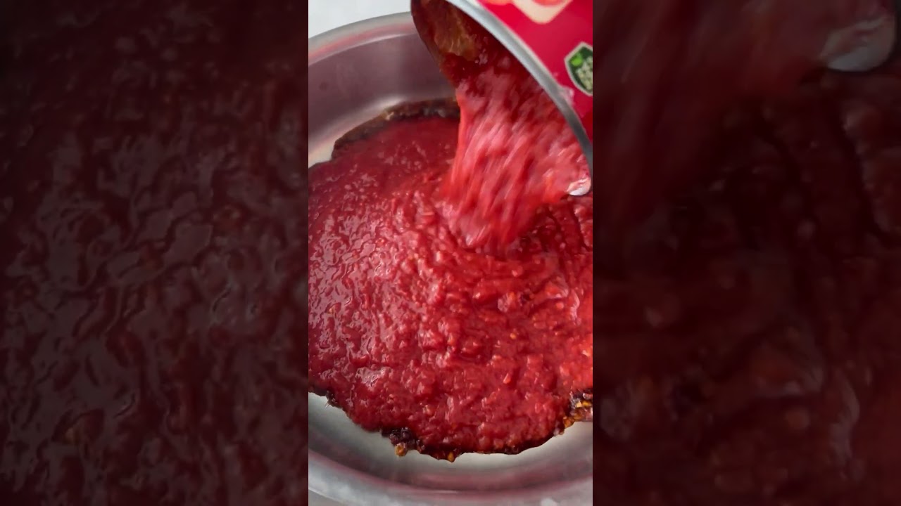 2. Pour vegetable broth and crushed tomatoes over the aromatics. Bring to a simmer, stirring frequently.