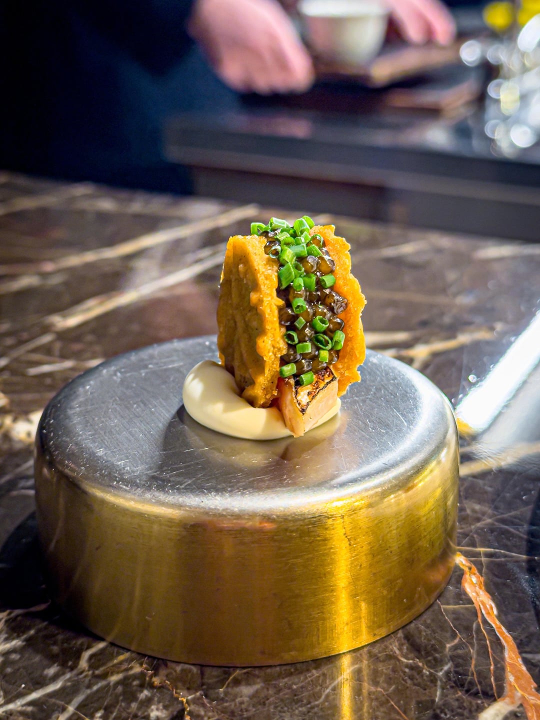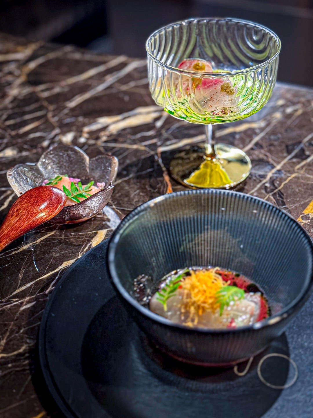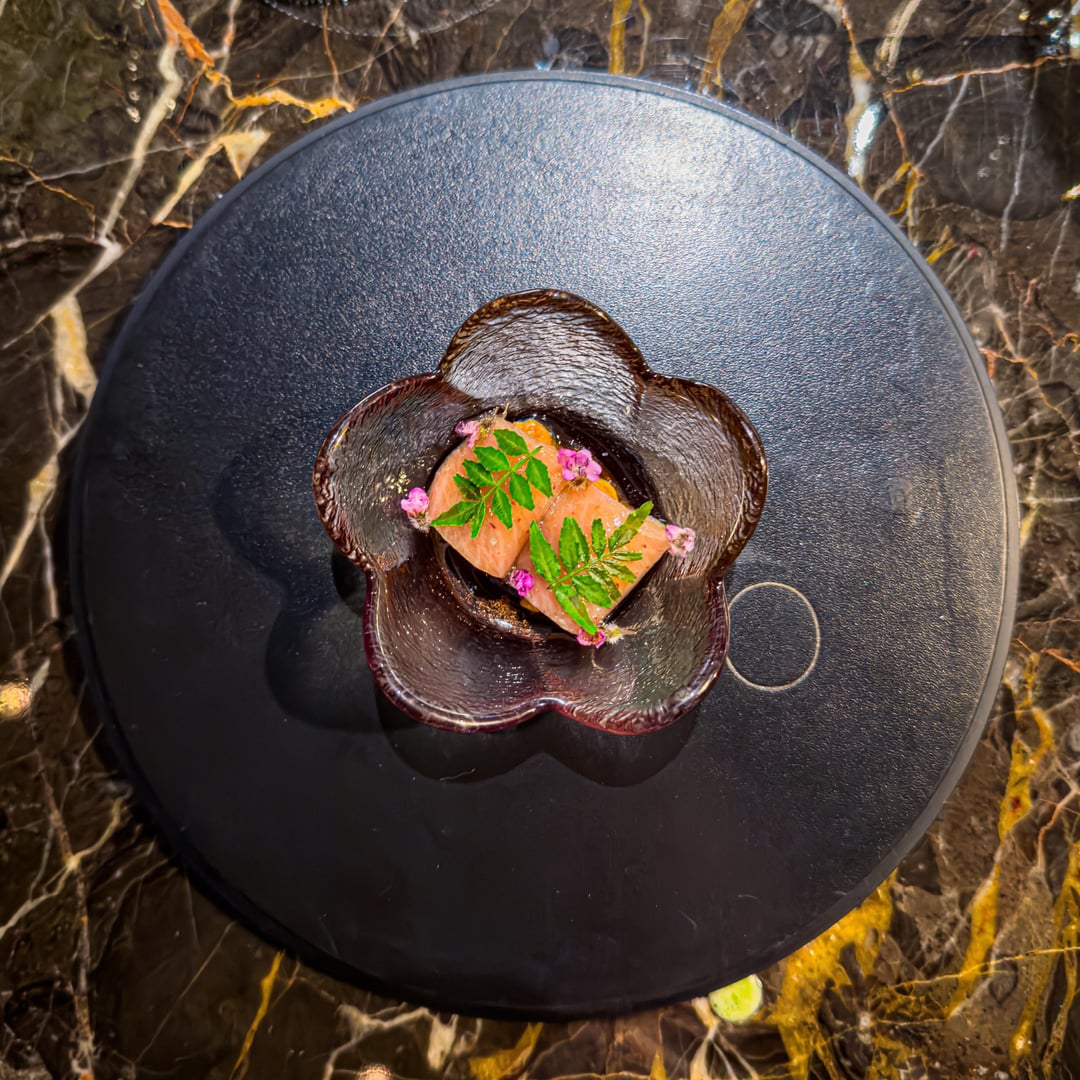 – 6” offset plating tweezer was a bit of a weird cutlery choice for the sashimi dishes at the start. It’s cool in a way that you’re using the same tool as the kitchen, but in terms of comfort a fork and/or chopsticks would’ve been a better choice imo.
