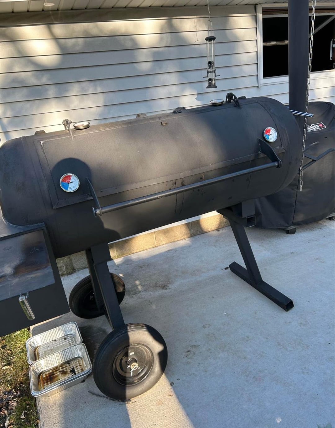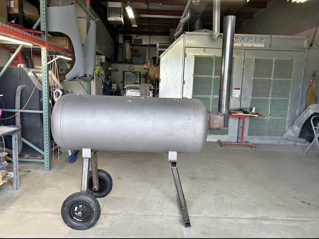 Picking it up Saturday. Built summer of ‘23 from a 129 gallon air compressor, all 1/4” steel. Guy is moving out of state and doesn’t want to move it. Originally listed for $2,000, then dropped to $1,500…accepted my offer of $1,200. 100” total width and 91” high at the stack, good deal?