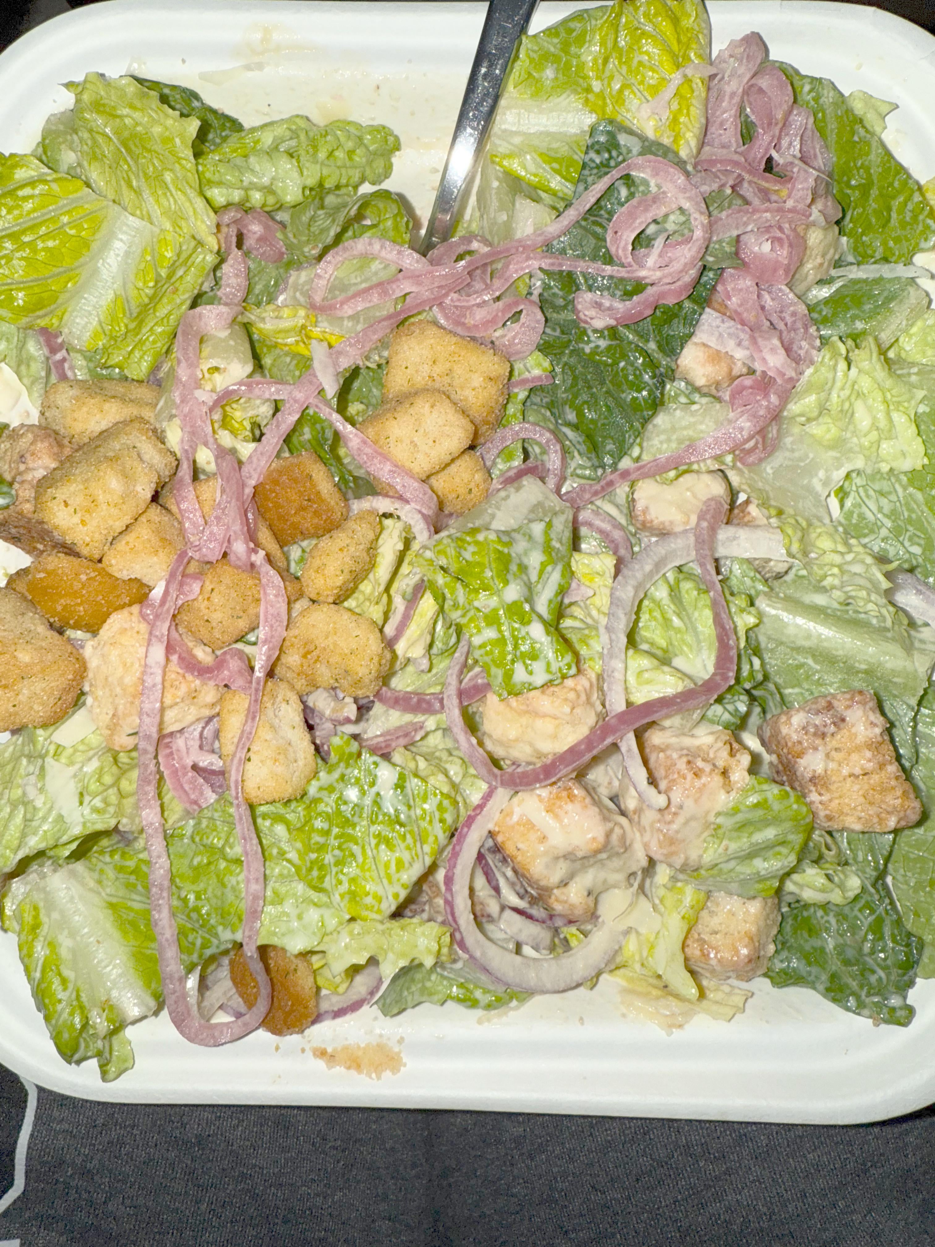 The restaurant I bartend at let me go back and make my own salad in the kitchen 😍 3 handfuls of pickled onion, 4 handfuls of red onion. There are more under the lettuce I promise 😭 my roommate gave me shit pre toss bc the onion to lettuce ratio was “unbalanced”