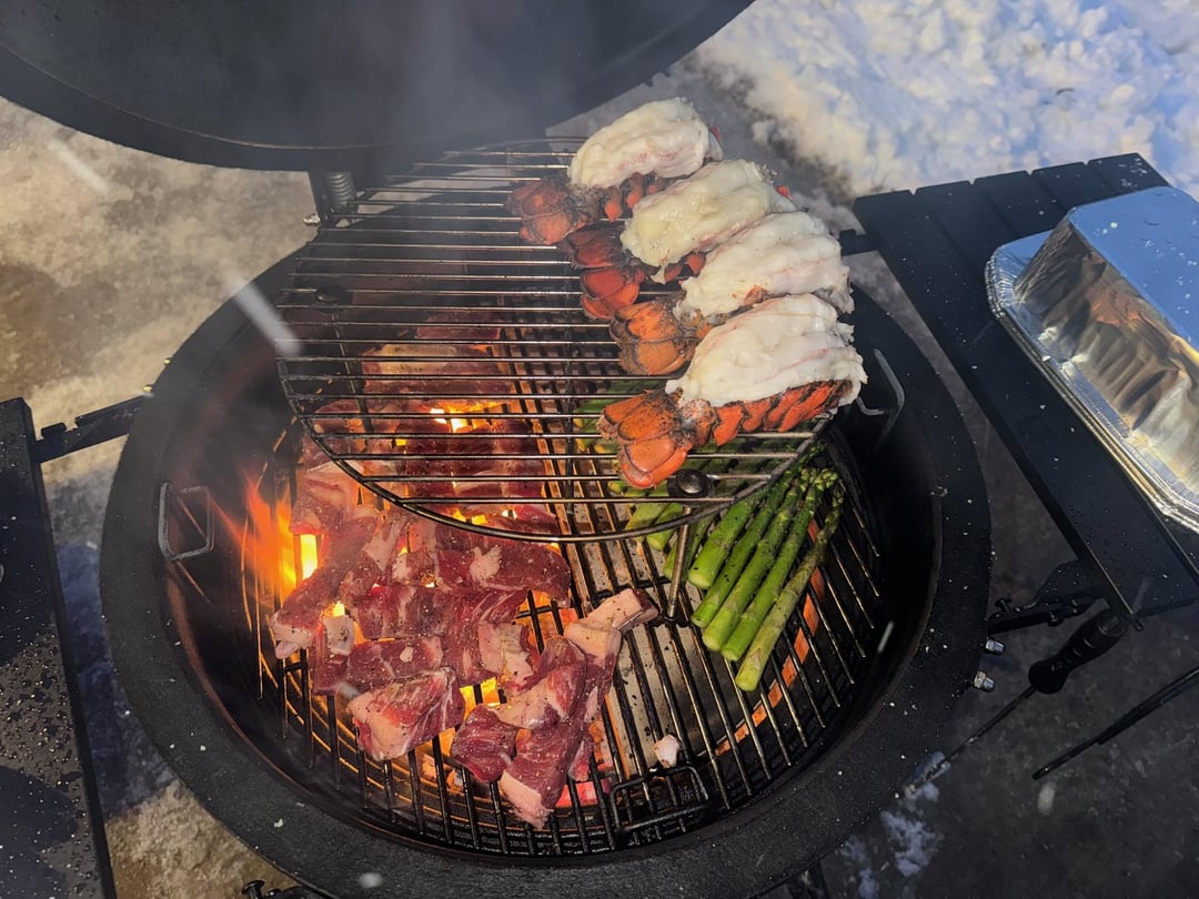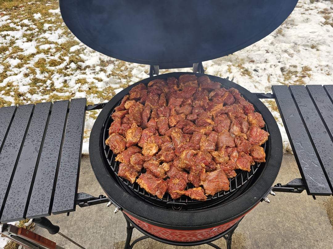 I was on hiatus for I don't know how long but I've been on the prowl for a ceramic kamado joe, bought one, and now I need to contribute to the KJ community. Was dead set on, at a minimum, KJ Big Joe or Primo XL Oval. I was stalking this floor model KJ Classic 1 at Lowes here, I kept coming back to it to stand there in Lowes and admire it's well built construction while convincing myself that I needed the Big Joe. Then it went on a closeout sale for $500 so I couldn't resist and put it in the back of my SUV. Definitely still getting the big joe or oval down the road but she's a beaut and is doing everything I need. Ive been grilling and smoking for the last 10 years but not on a kamado! Here's a few of my last cooks (4 pork butts on right now – just shy of 30lbs)