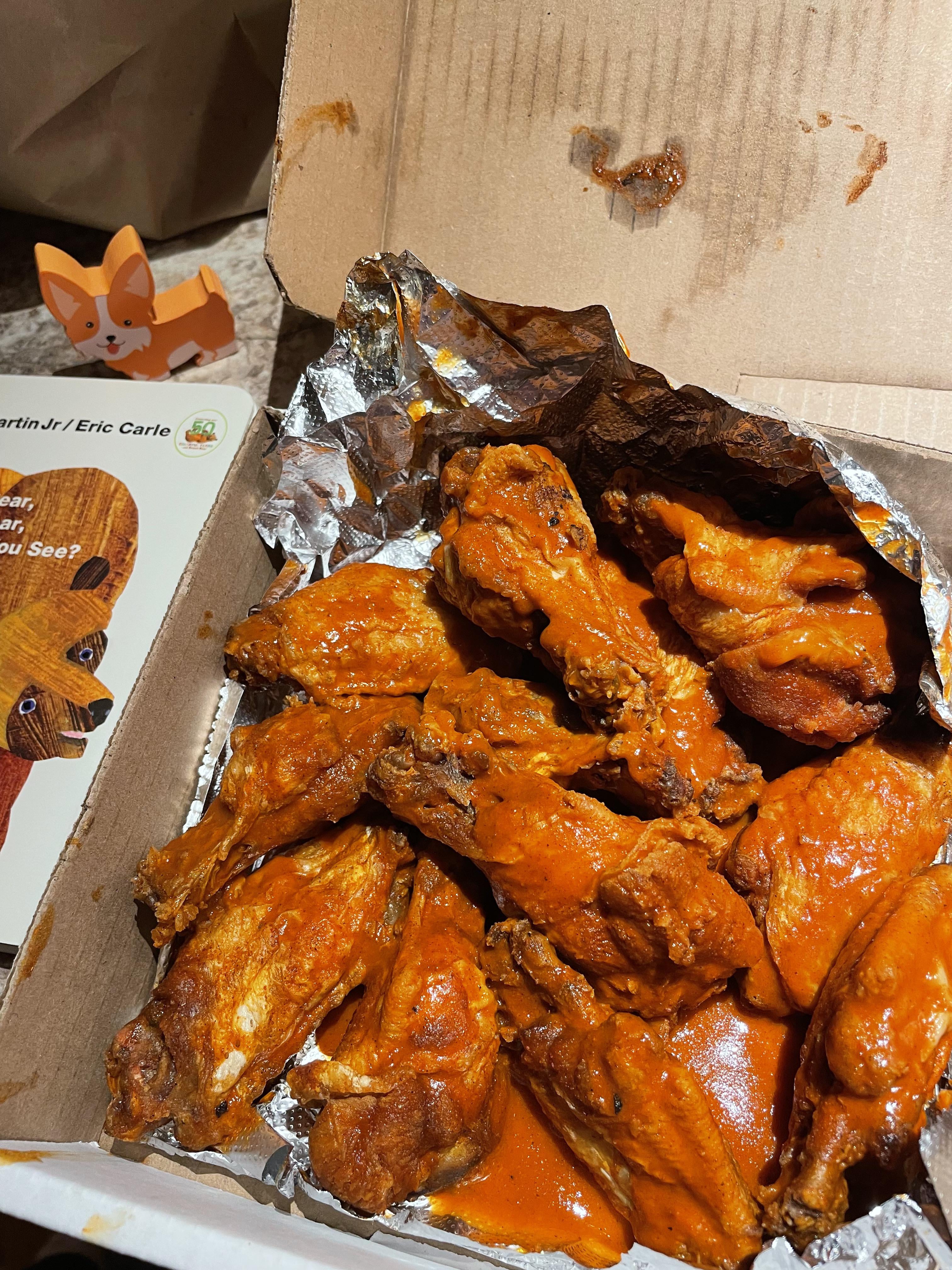 Got a 20 piece and a ham sub for $15 with a Groupon-like promo deal. To top it off they added an extra 2 hot wings. Not Pictured: half medium cause my wife got into them immediatelyby Radiation___Dude 4 Comments battery923 8 months ago Wings and Eric Carle for the win! dmcdjr76 8 months ago They look great. At a great price as well! Several-Project-8855 8 months ago Fur shizzle Leorist777 8 months ago They look amazing! Crispy goodness! 🤤Write A CommentYou must be logged in to post a comment.
