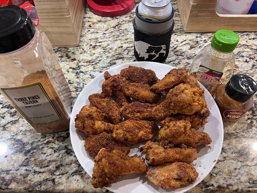 Lightly breaded with “Wing Dust” from a biker bar in Mt Holly Springs, PA= crispy, Smokey, salty, sweetAlso, honey and BBQ seasoning. I f’n love both. Happy Friyay wing lovers!! by BeautifulMix7410 4 Comments e_slide-68 8 months ago These look PFG! MrK20B 8 months ago Time and temperature? Can’t ever seem to get mine crispy HittingItFlush 8 months ago Dry rub wings are so much better in my opinion. They look fantastic! Crab_Politics 8 months ago These kind of remind me of outback’s wings. Looks fantasticWrite A CommentYou must be logged in to post a comment.