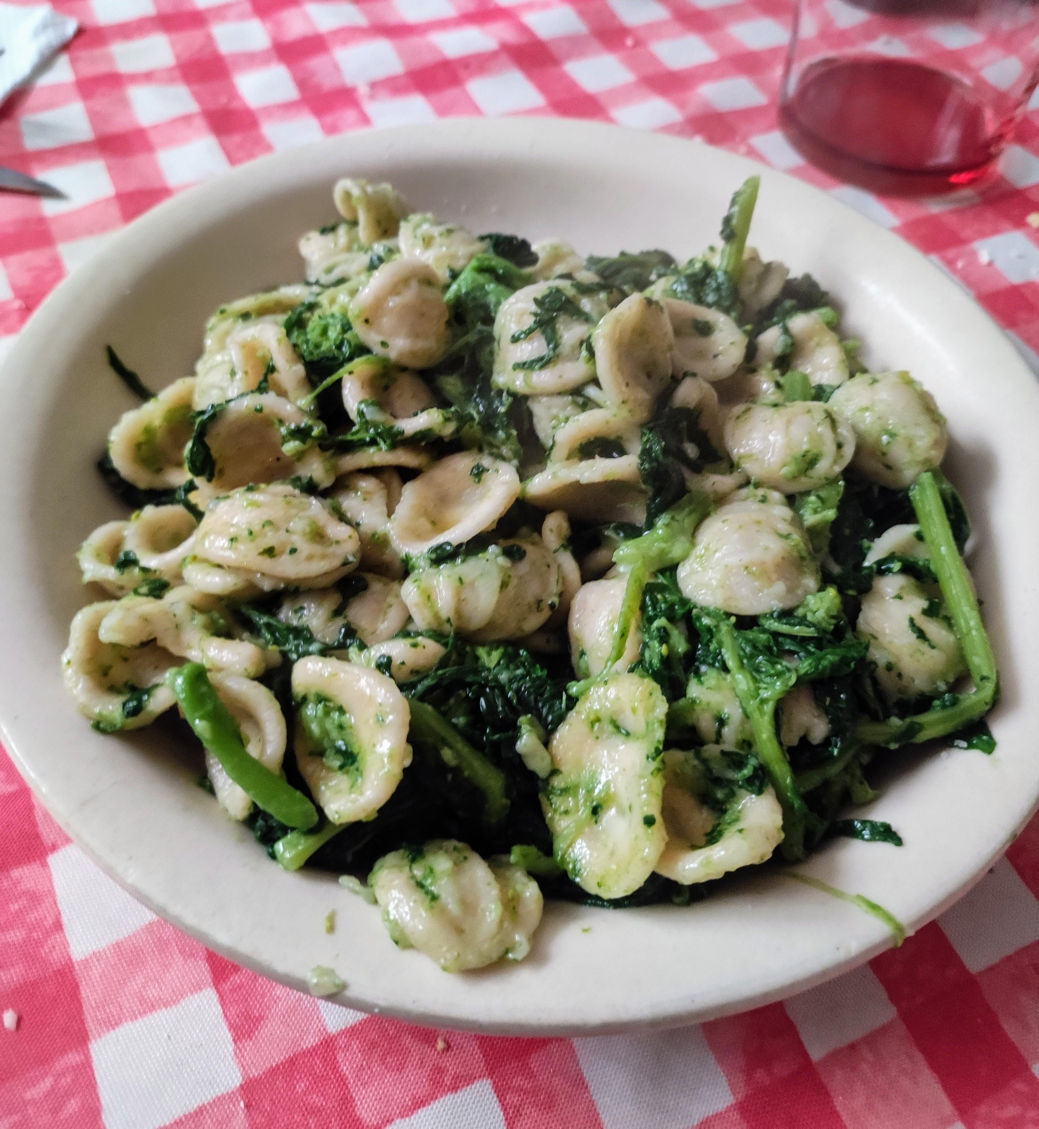This is probably my favorite pasta. There are so many, though. But rapini has such a nice, delicate, almost asparagus-like flavor, along with an wonderfully varied and tender texture. Mouth watering now. My partner forgot to plant it this year (and I’m the asshole who isn’t helping much in the garden, so I’m not blaming them). But usually we eat it at least once per week during the transitional seasons (PNW). Anchovies, garlic, peperoncino, olive oil, cooking water and muddica? And what is your review of the dish?