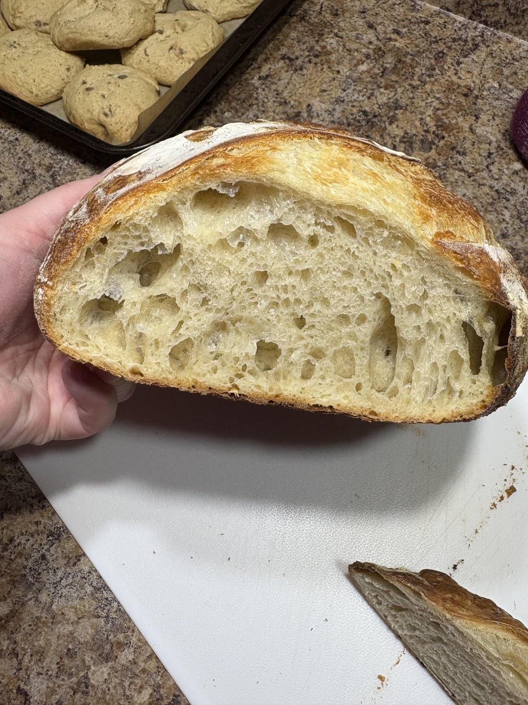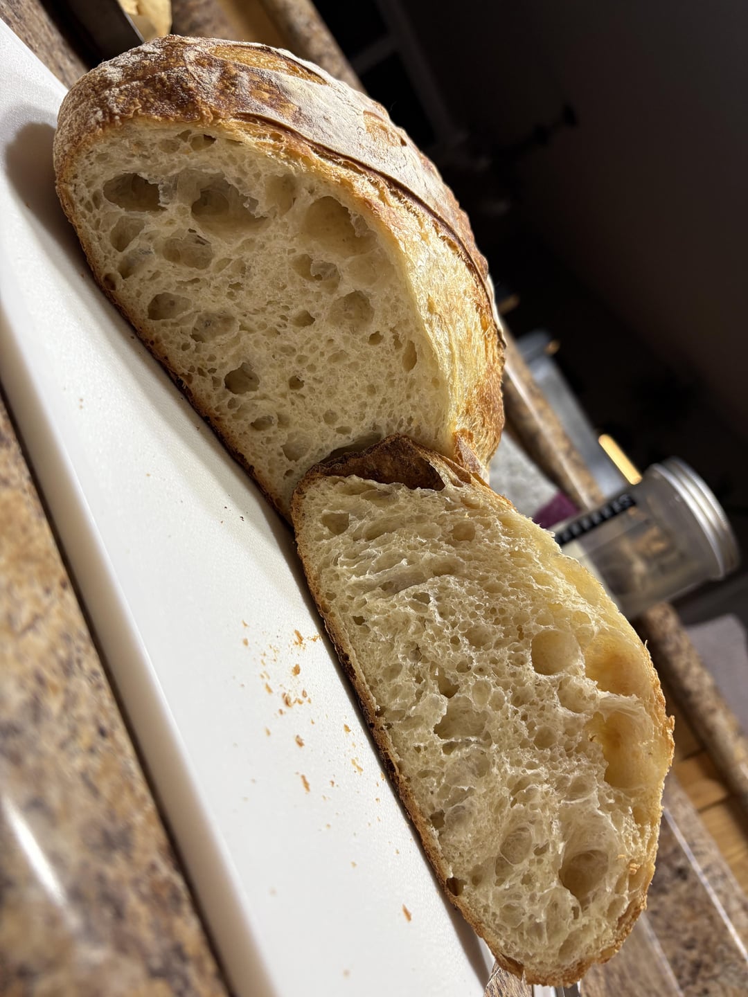 After countless videos watched, dozens of of recipes read, and an endless amount of anxiety, I have officially baked my very first loaf of sourdough! Is the ear nicely curled? No! Is the crumb perfect? No! But do I really care about those things? Also No! I am SO proud of myself for actually pulling this off!