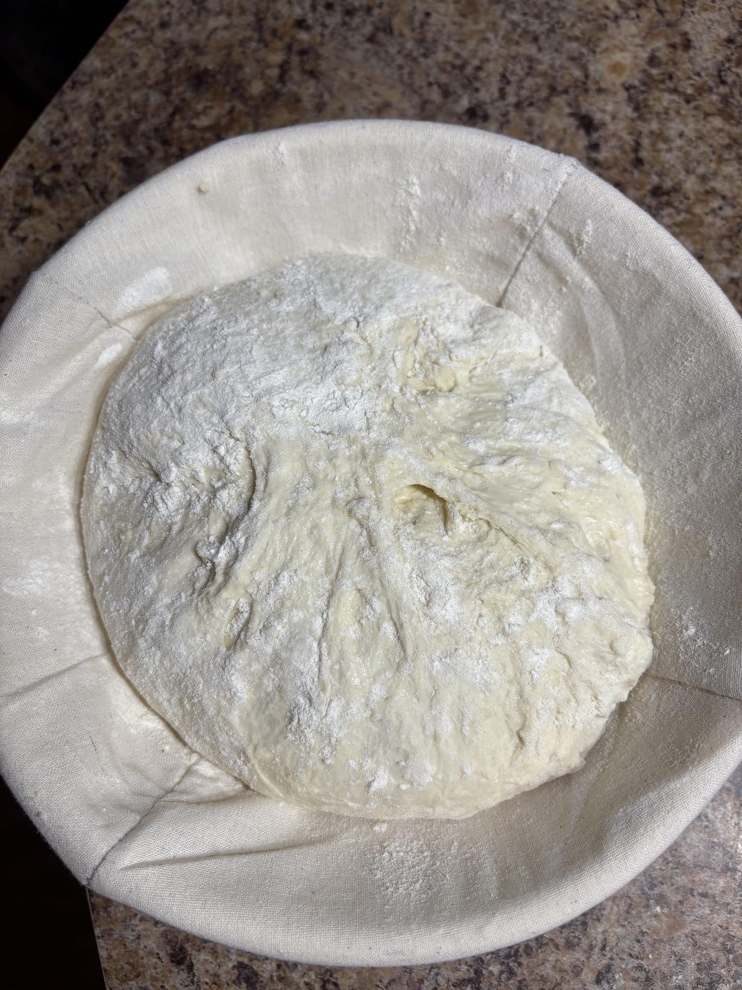 – In a bowl add; 150g starter, 360ml warm water, 10g salt, 500g of flour