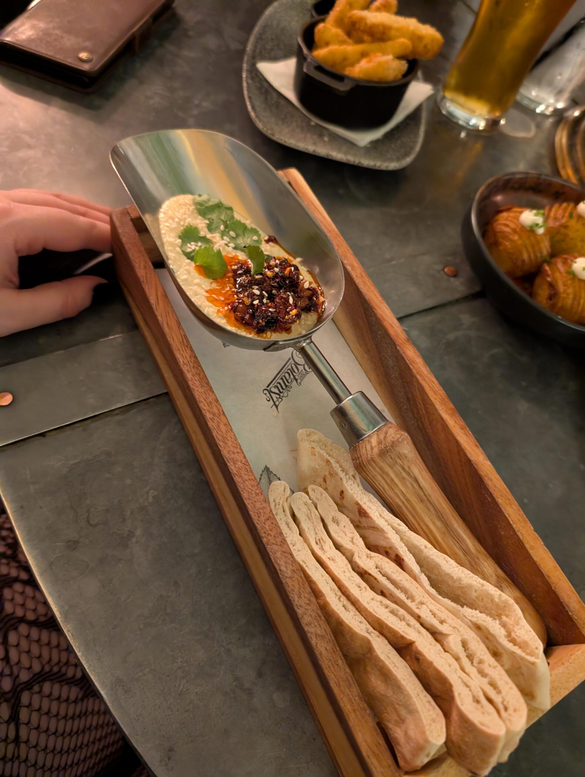 Hummus served in a trowel… Botanist, Cardiff. by fionagrace25033 1 Comment RawChickenButt 10 months ago Not only a plate but if this was an appetizer then make it a decent amount of hummus. This is a side size portion.Write A CommentYou must be logged in to post a comment.