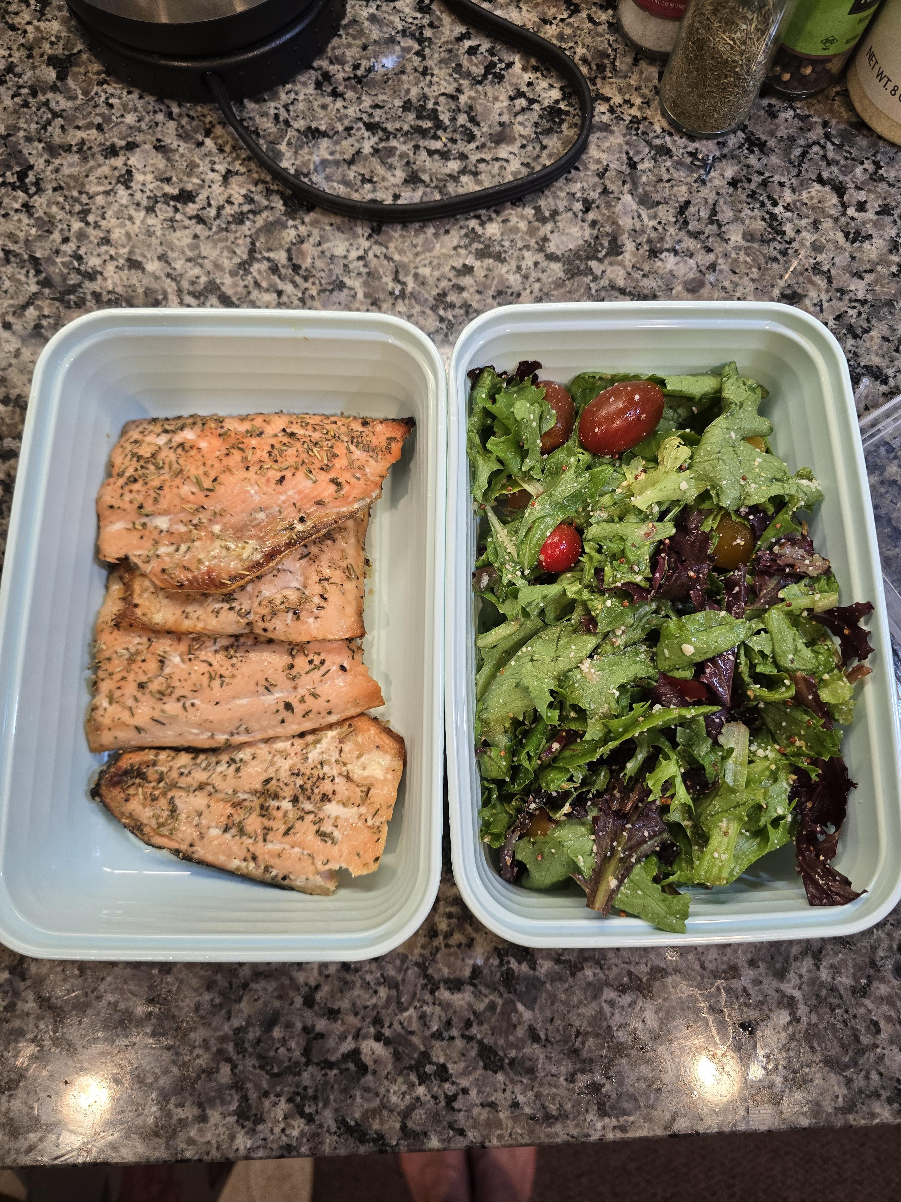 Recipes: Salmon 250g Salt and Pepper and thyme for flavor on the Salmon Butter Kale Cherry Tomato Olive Oil Parmesan Cheese