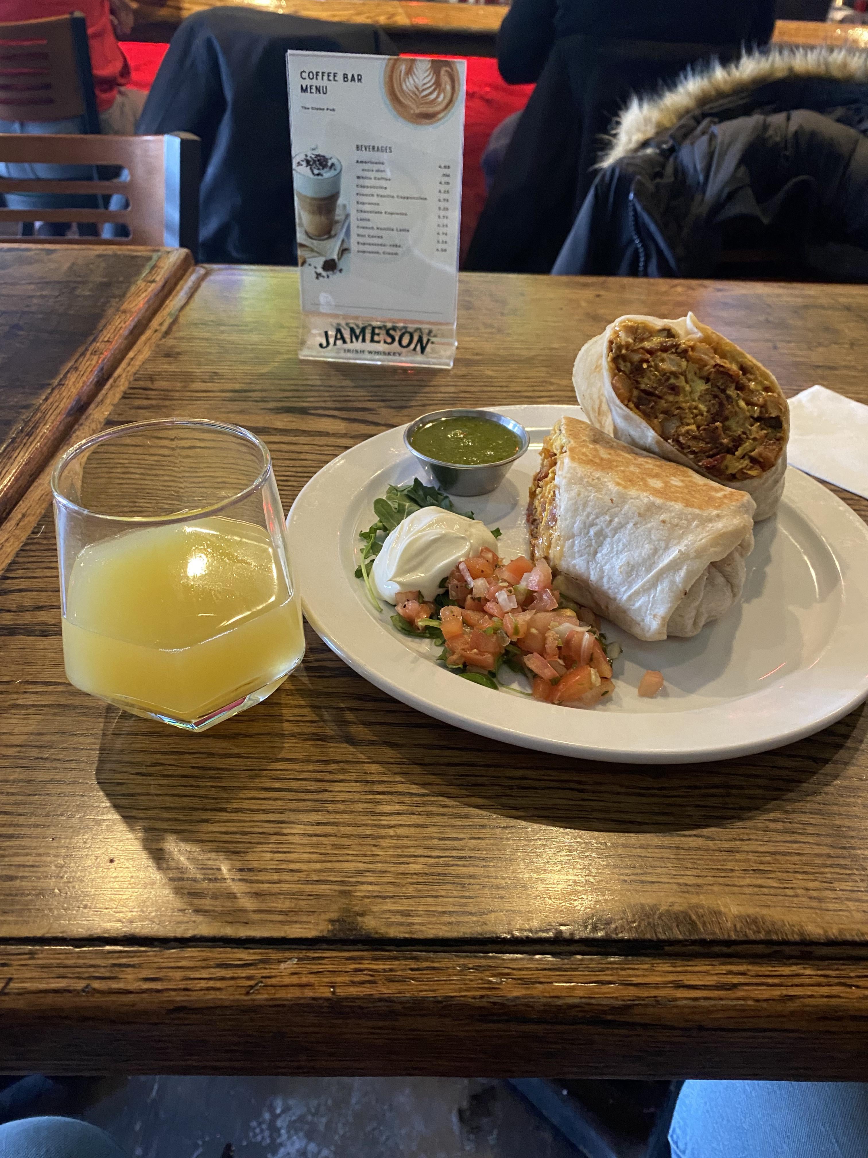 The breakfast burrito is good there but they need to put the pico in a little dish. The pico juice spreads all over the plate and gets the tortilla so soggy.
