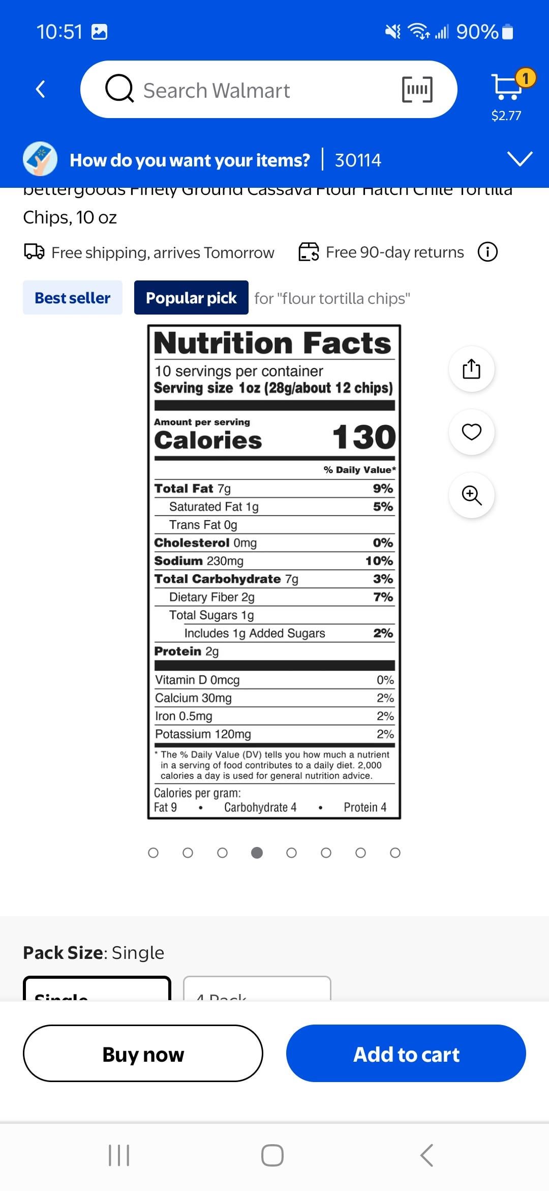 Compare the nutritional info to a bag of regular corn tortilla chips. This is a serving of twelve chips so that looks about right to me. I might try them, I like the Quest chips but they’re so fragile, it’s hard to dip them into anything.