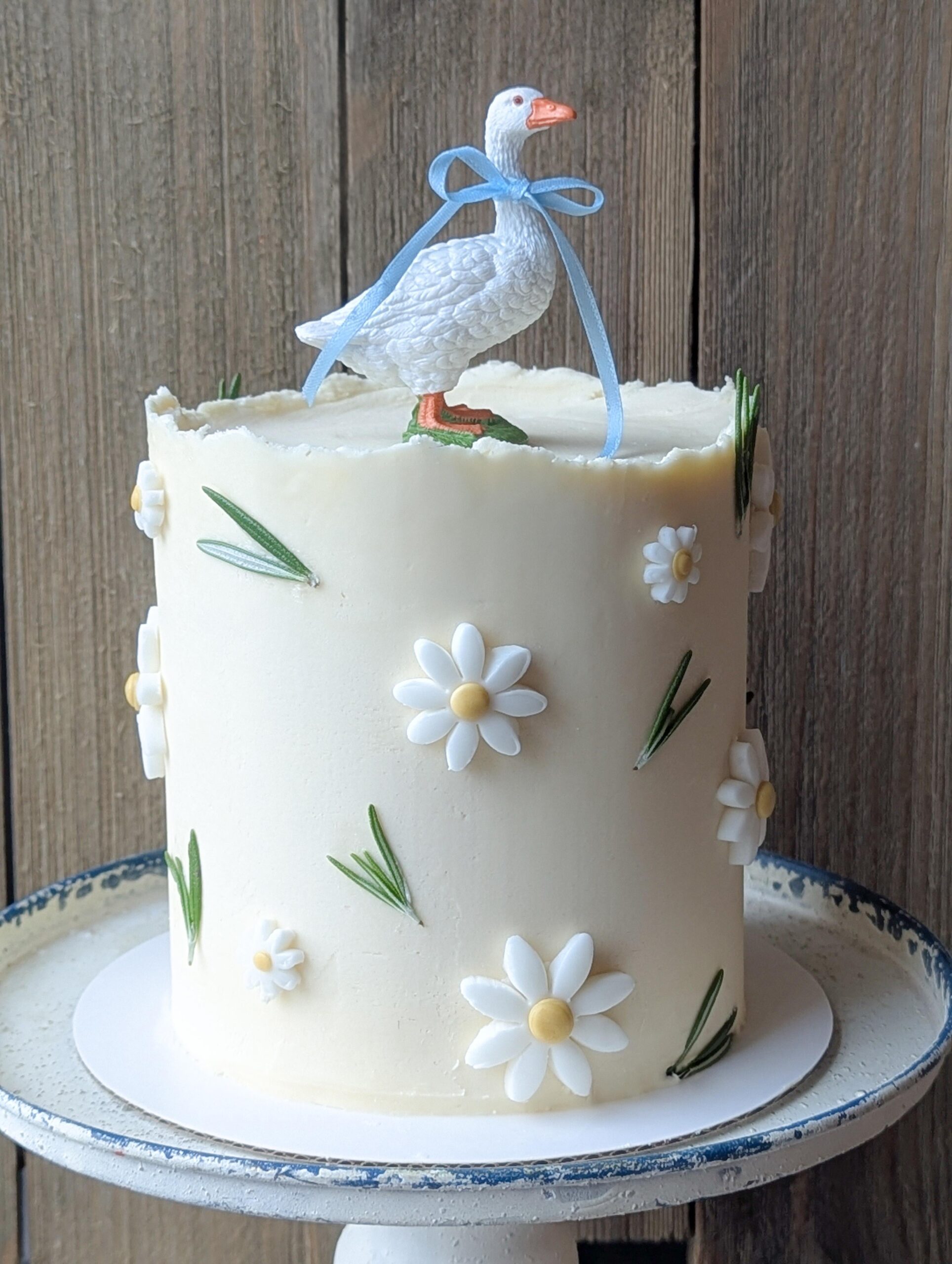 Share Facebook Twitter Pinterest LinkedIn Reddit Vanilla Almond Cake with vanilla American buttercream, homemade marshmallow fondant flowers, and rosemary for the greenery. by MamaRazzzz 6 Comments married2nalien 1 year ago Wow – really well done! How did you get the buttercream so smooth? Eederby 1 year ago How did you create the daisies? Are the butter cream? This is gorgeous! NewbieMaleStr8isBack 1 year ago What a beauty maybeCheri 1 year ago Very elegant. Not a description I would normally use for a cake but it definitely fits here. So simple and stunning. Just-Call-Me-J 1 year ago The blue ribbon has me thinking Mother Goose Punch01coral 1 year ago A very pretty silly goose 🪿 😍 Write A CommentYou must be logged in to post a comment.