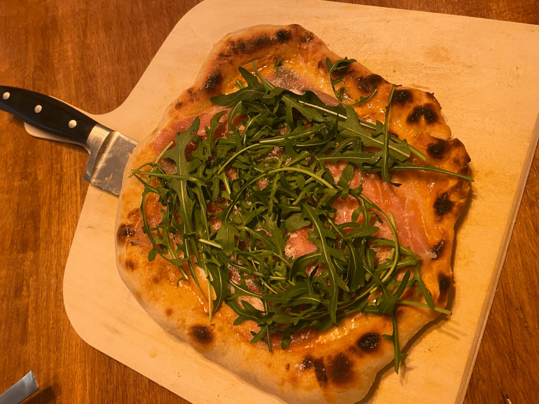 After experimenting for a while with making neapolitan pizzas, I got these results. I use a high hydration dough (65-70%) with poolish. I learned that it works best for me to pre-bake the pizza for 2-3min. Then I add my toppings and put a little olive oil on the crust to help color and bake the crust. Before I put the pizza in the oven, I wait till the spiral is glowing red again. This seems like a must to get a nice crust. However, I still cannot get the real neapolitan style with the leopard print on the crust. Any tips are welcome 🙂
