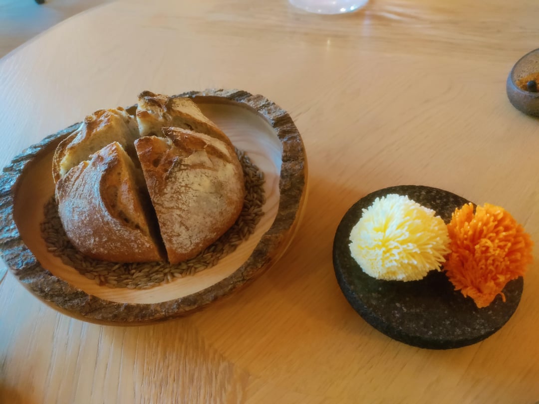 The bread presentation was really nice, I liked the wooden bowl it appeared in. The bread itself was crusty, fluffy on the inside and served at the perfect warm temperature. Unremarkable but very good. The ‘anemone-style’ (or play doh, as others have said) butter was good and I appreciated having two types. I found it worked best when combining the two in differing ratios.