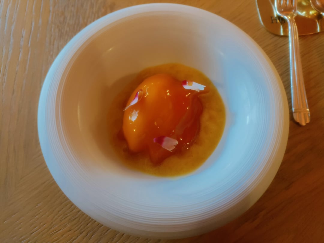 Less so was the mushroom and pine consommé served minutes later, which was served from a glass decanter and was lukewarm. The scent of pines came through and the mushroom flavour was there (albeit not very strong), but I’d personally have preferred this served warmer.