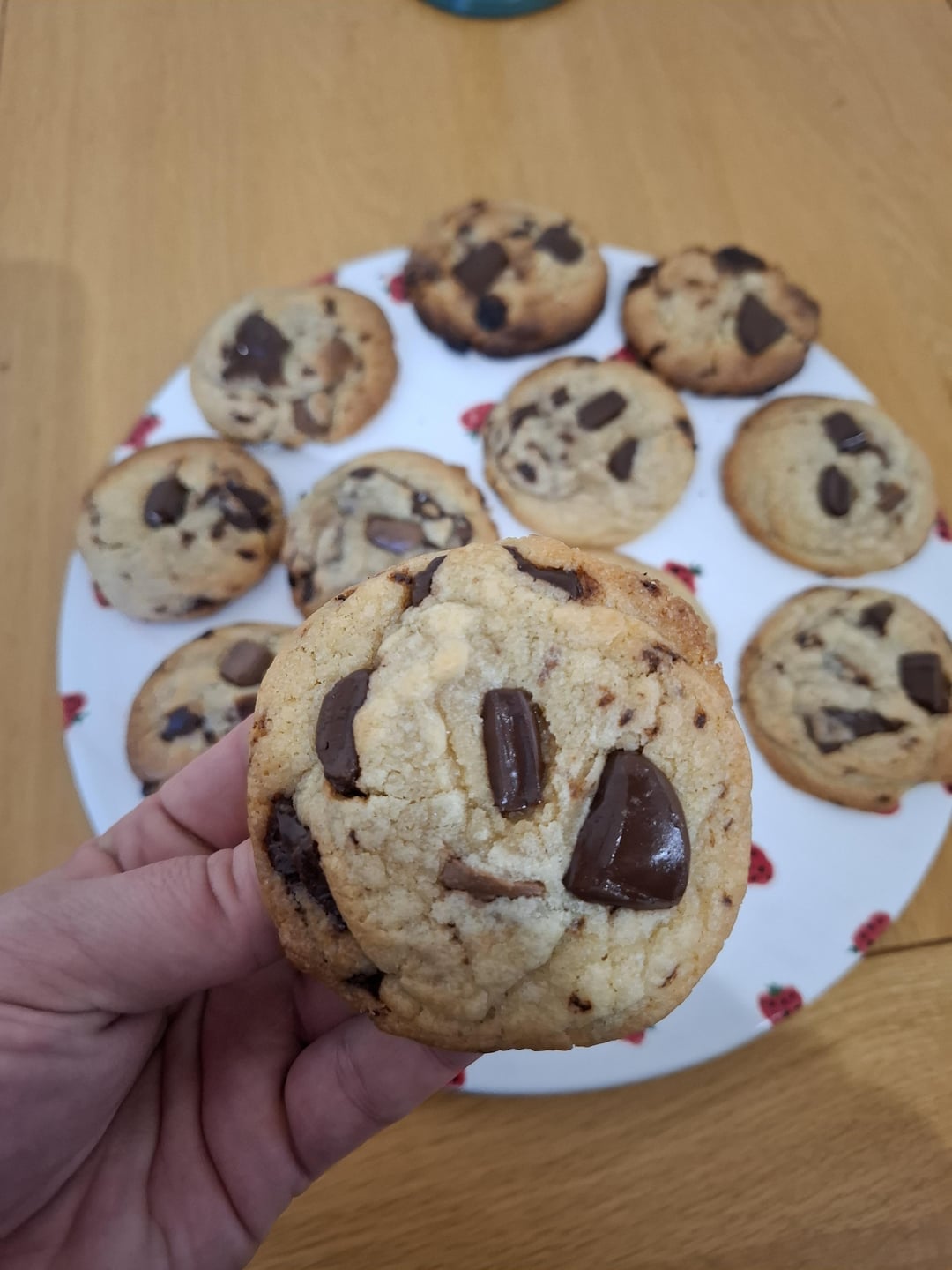 trashbinwarrior 12 months ago They look like they have the perfect ratio of crispy and chewy with perfect size chocolate chunks!