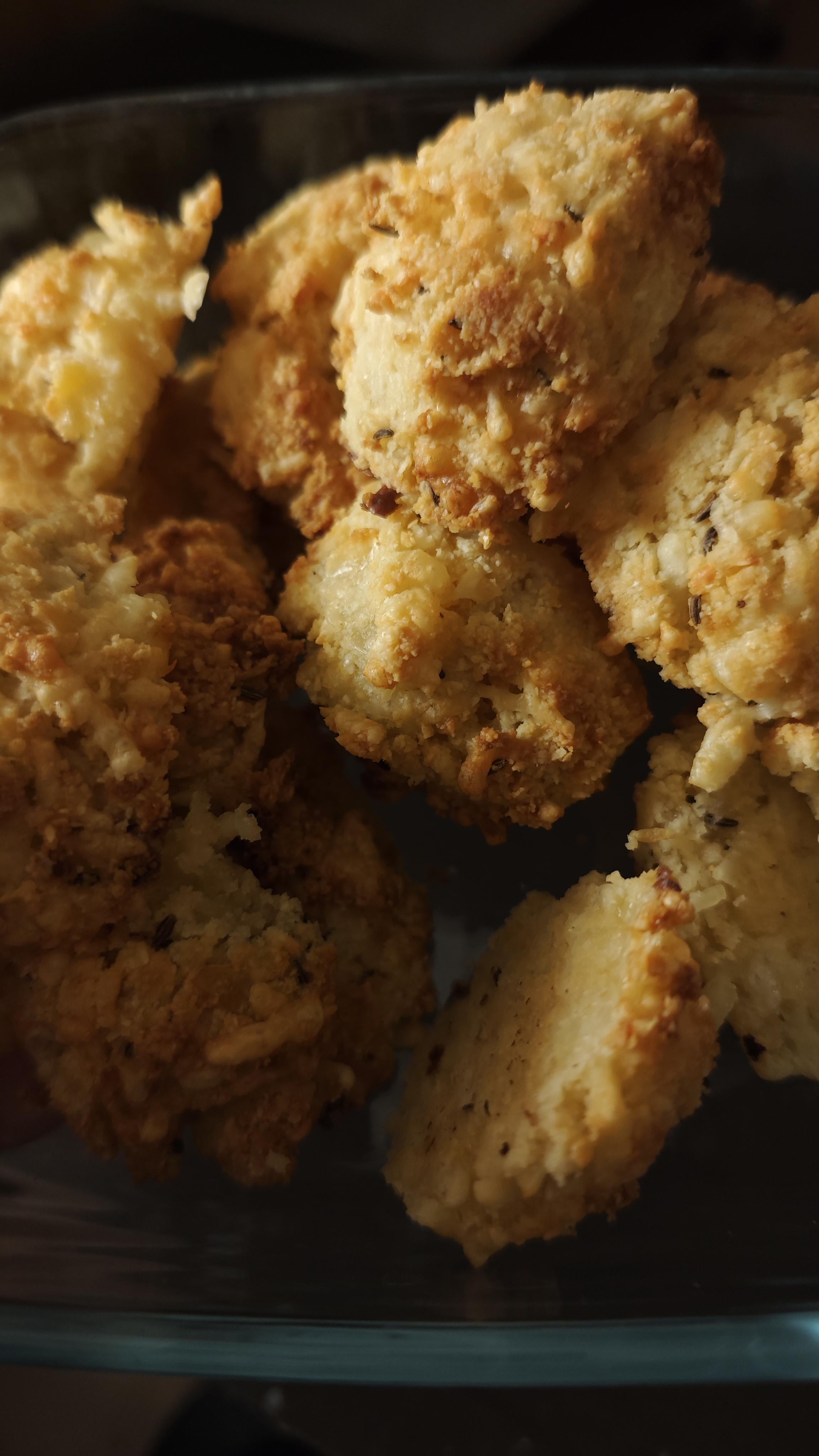 150 gr almond flour, 130 gr grated cheese, 30 gr butter, 1 tbl spoon creme fraiche, 1-2 tsp cumin seeds, 1 tsp garlic powder.by NotThatGuyAgain111 1 Comment Goose_IPA_1990 1 year ago I thought it was fried chicken 😳Write A CommentYou must be logged in to post a comment.