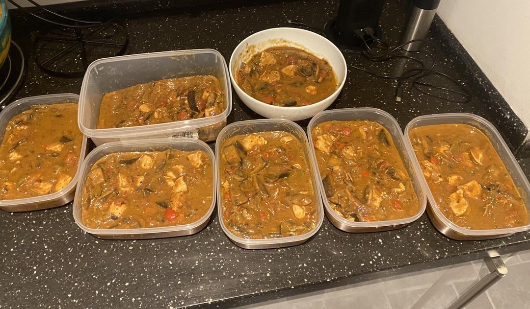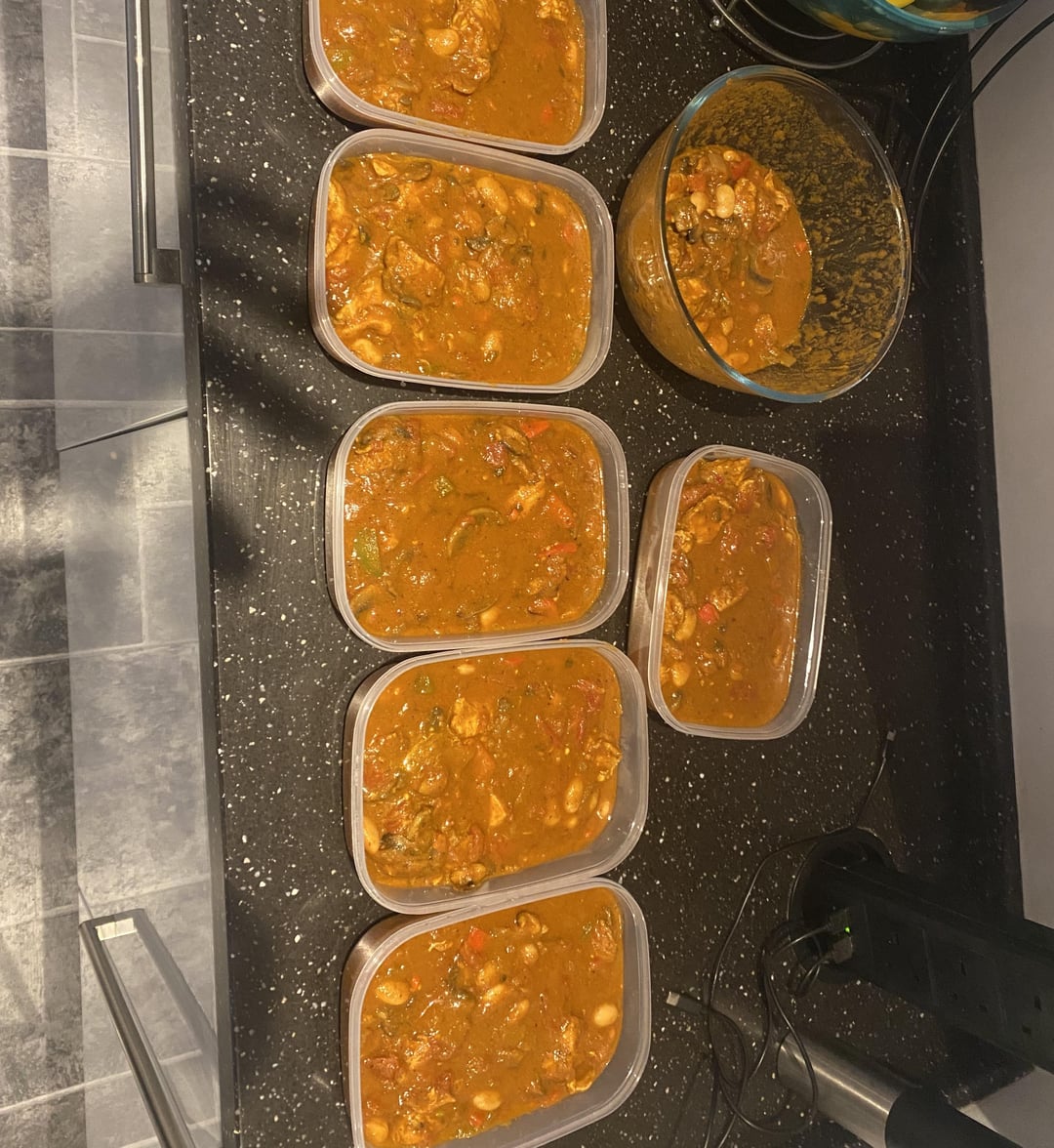 Made in bulk a stroganoff, sweet and sour, thai green and an indian curry. Each meal slaps and made 27 meals in total. Around 500 cals and 55g protein per meal 💪