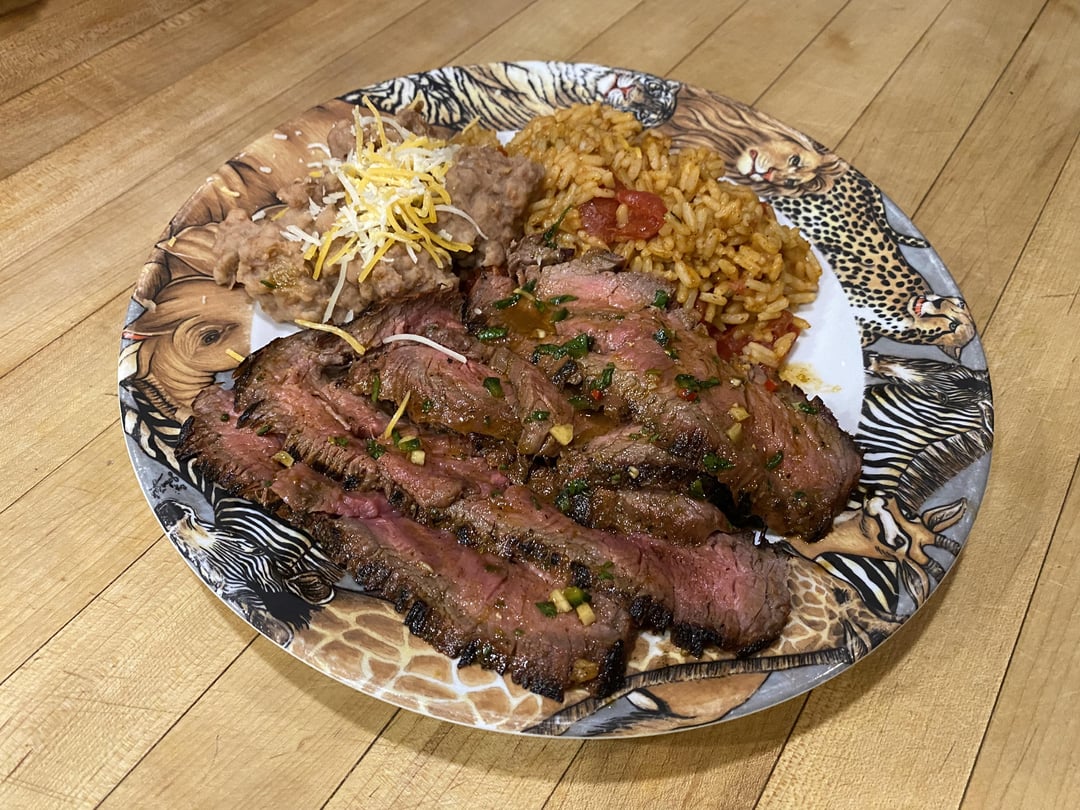 Carna Asada on the 22” finally a decent day after a brutal freeze for a month and wind by doubledbbq 2 Comments grumpsuarus 8 months ago Ok Cool but that rice though Good-Plantain-1192 8 months ago That flank looks delish!Write A CommentYou must be logged in to post a comment.