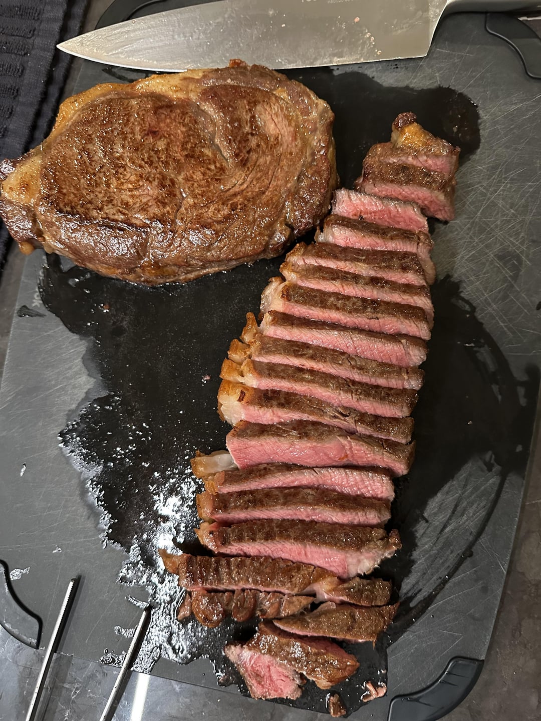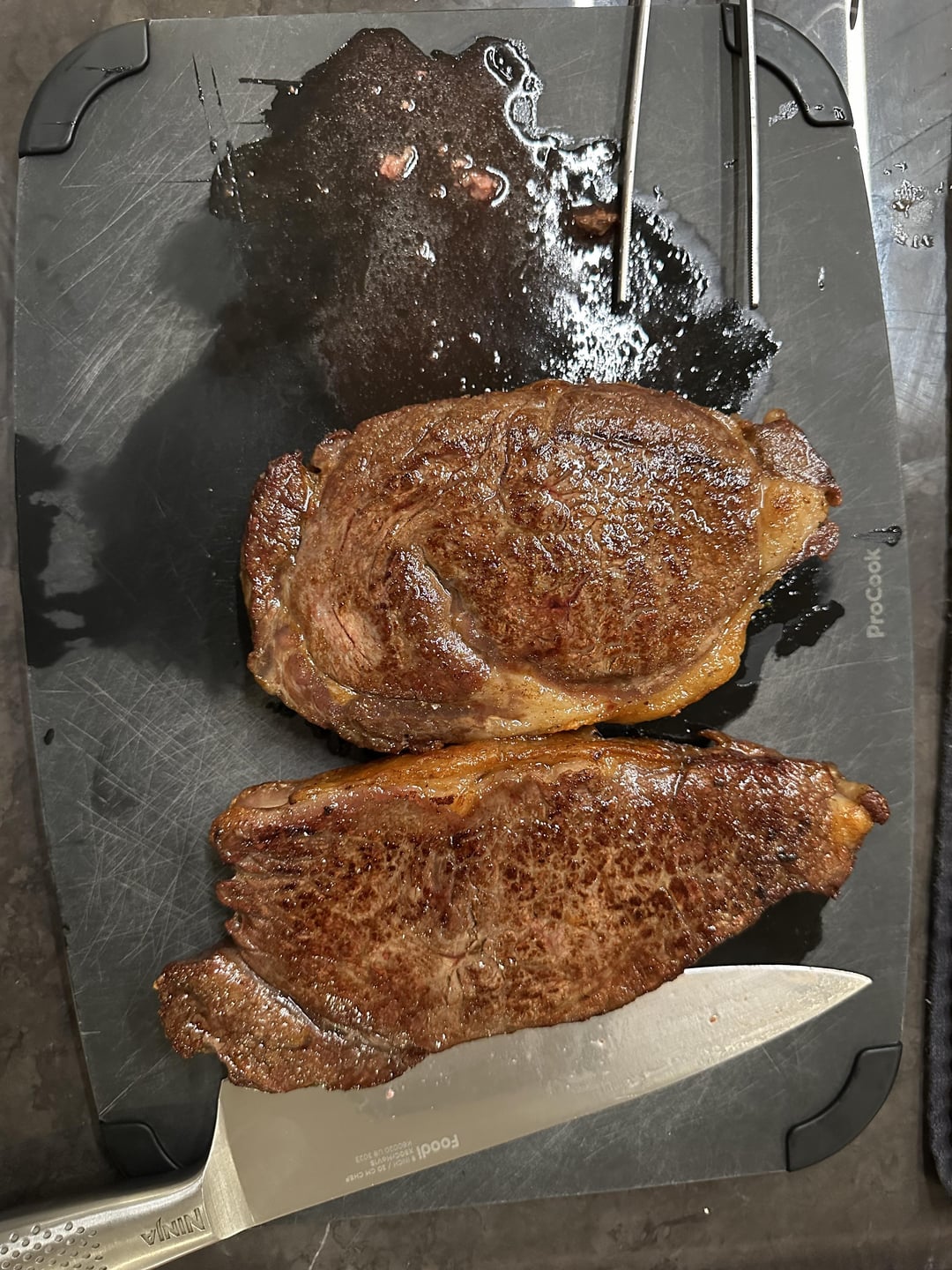 Are you sure that’s a sirloin? That looks like a ribeye on top and a strip on the bottom. Especially with the way the fat lines up on both of them.